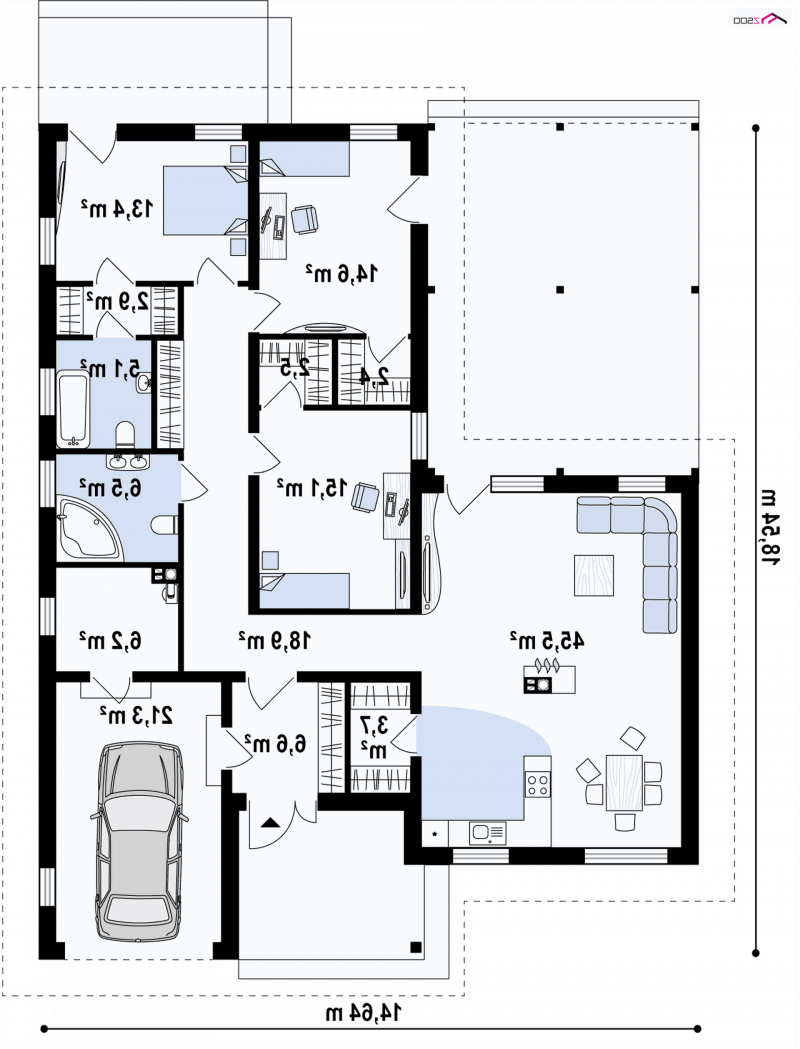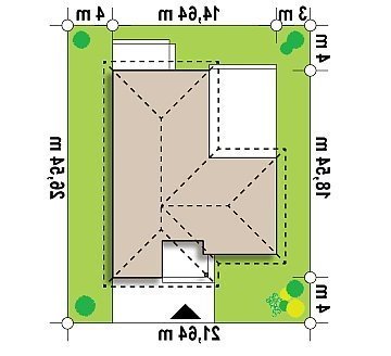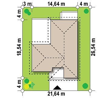 - Min. wymiary działki 26.54x21.64 m
