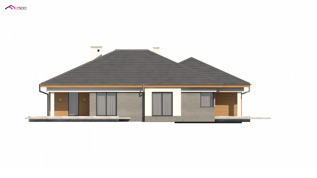 Z281 to projekt domu funkcjonalnego o programie użytkowym rozwiązanym w obrębie parteru. Spokojna kolorystyka zapewniona przez okładziny z jasnego drewna nadaje mu wyjątkowego charakteru.