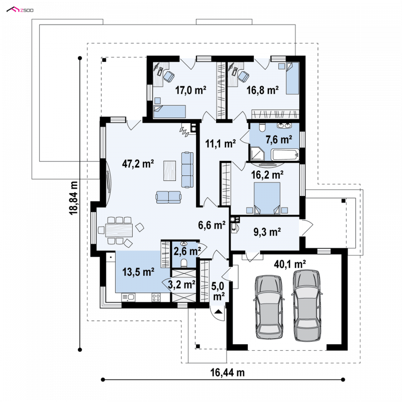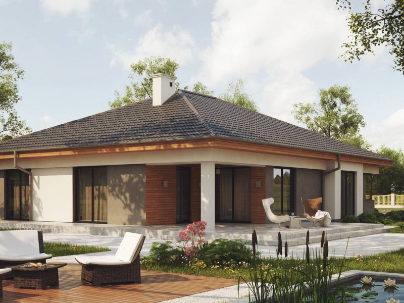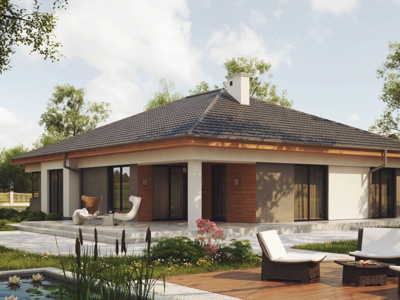 Projekt Z281 to wspaniała propozycja domu na lata. Jego parterowe położenie i funkcjonalny układ zadowoli zarówno młode jak i starsze pokolenie.