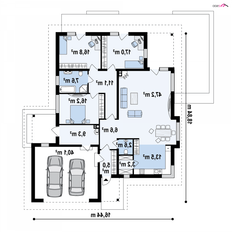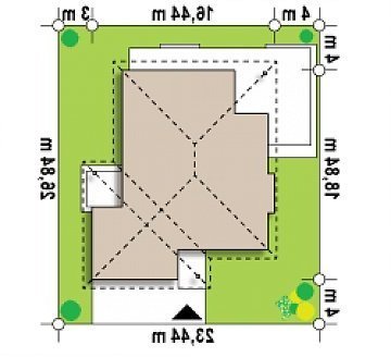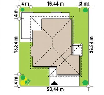 - Min. wymiary działki 26.84x23.44 m