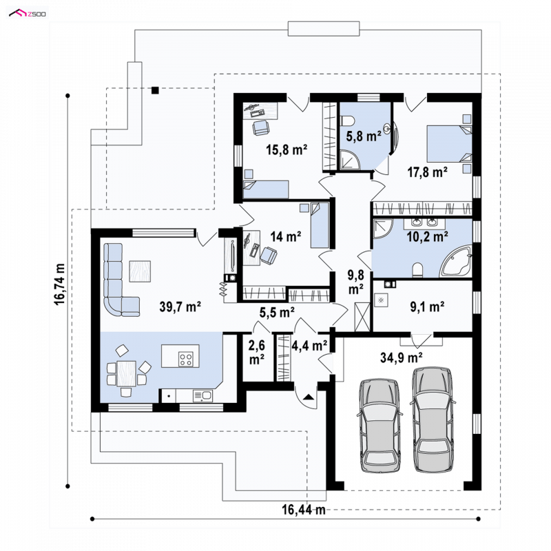 Z285 spodoba się wszystkim zwolennikom pomieszczeń na jednym poziomie. Optymalne wymiary pomieszczeń zapewnią komfort użytkowania wszystkim domownikom.
