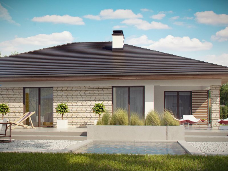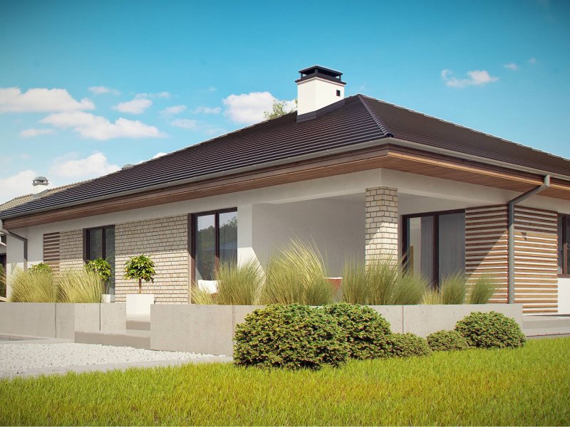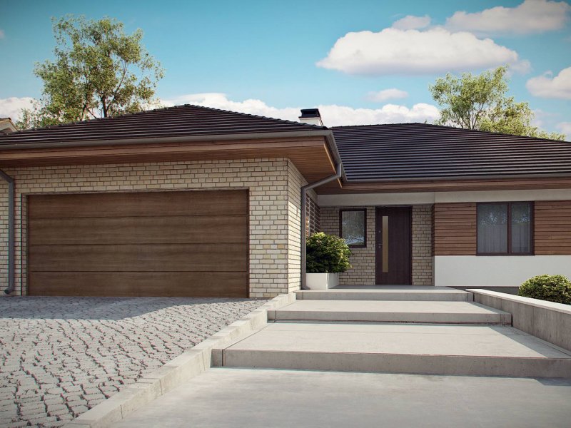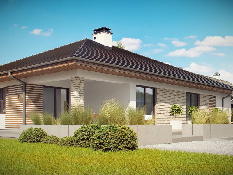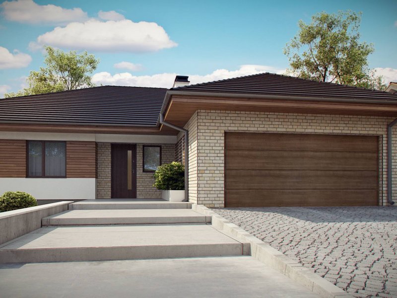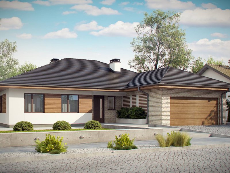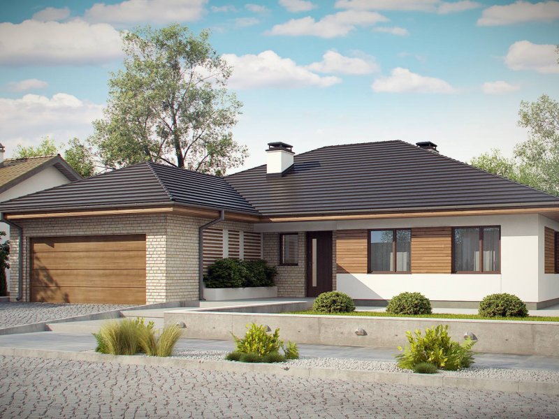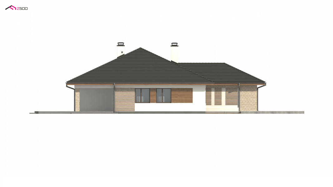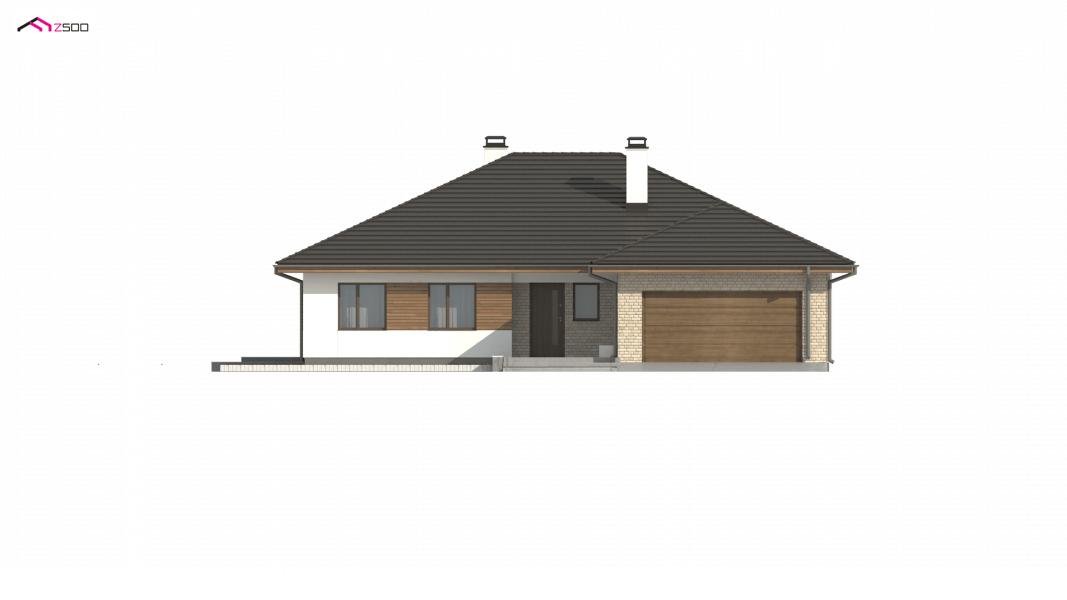 Projekt Z301 to kompleksowy dom, zawierający w swoim wnętrzu prawie wszystko, czego można oczekiwać od klasycznego domu parterowego. Bryła na planie prostokąta, z połączonym, wspólnym dachem, garażem na 2 autawykończona została dzięki subtelnym detalom jak: dobrana kolorystyka, drewno elewacyjne czy jasny klinkier. Na większej działce dom prezentuje się jak gustowna rezydencja.
