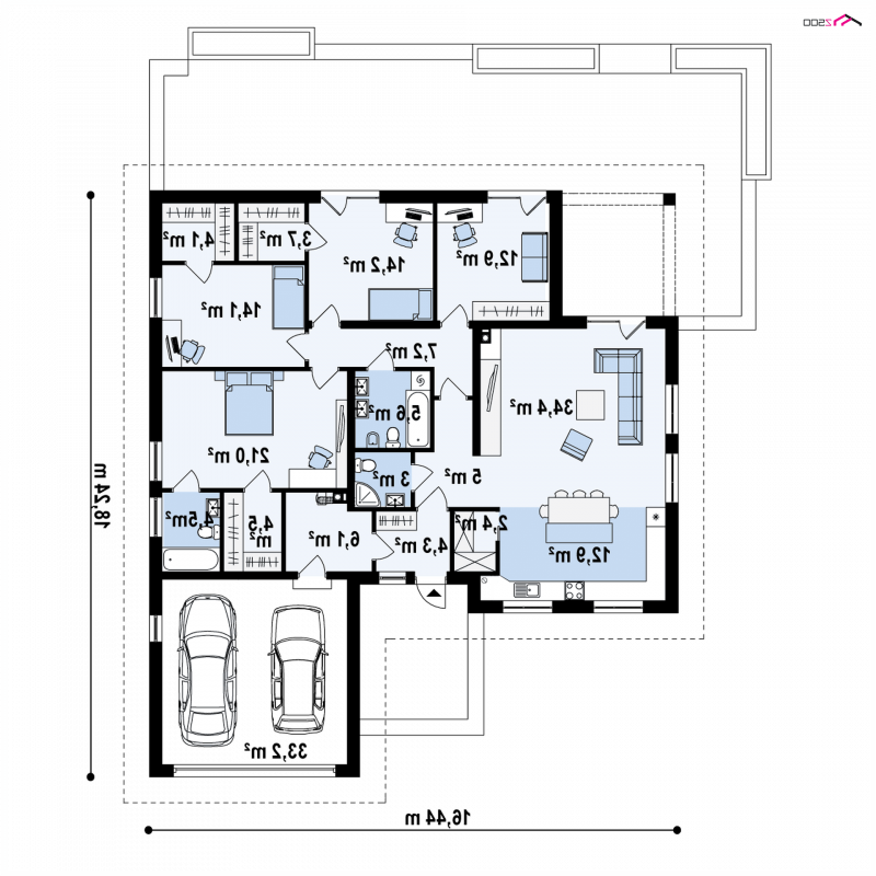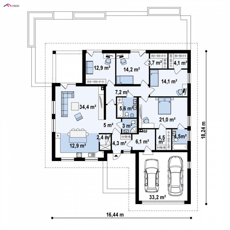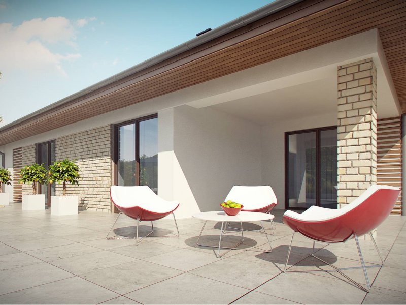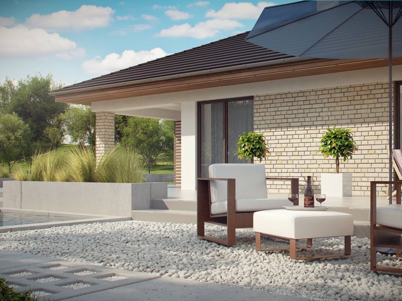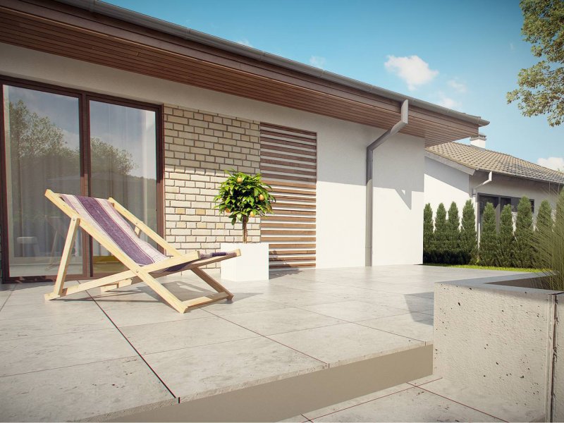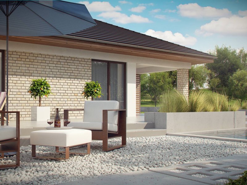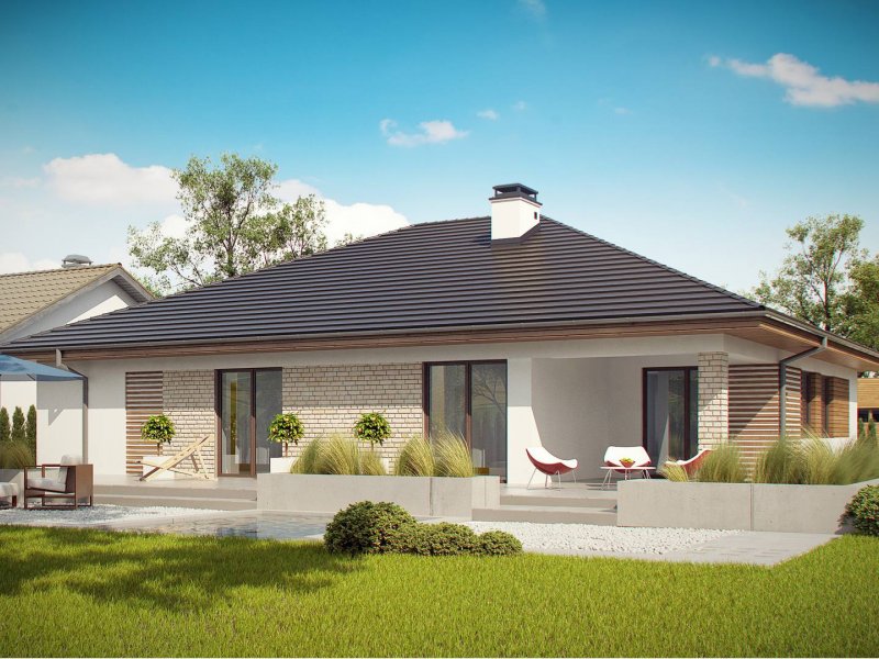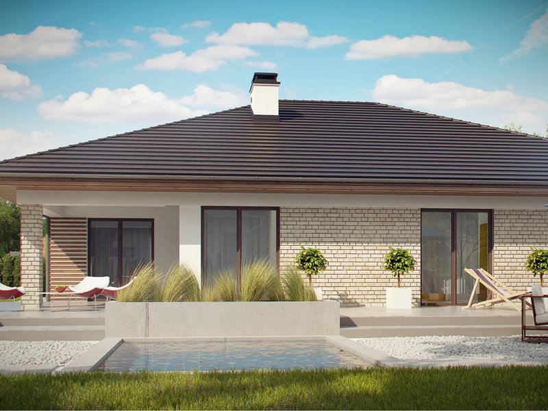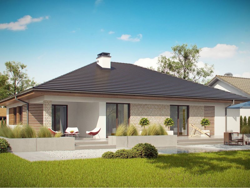 Projekt Z301 to kompleksowy dom, zawierający w swoim wnętrzu prawie wszystko, czego można oczekiwać od klasycznego domu parterowego. Bryła na planie prostokąta, z połączonym, wspólnym dachem, garażem na 2 autawykończona została dzięki subtelnym detalom jak: dobrana kolorystyka, drewno elewacyjne czy jasny klinkier. Na większej działce dom prezentuje się jak gustowna rezydencja.
