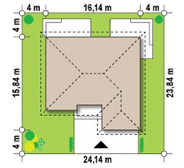 - Min. wymiary działki 23.84x24.14 m