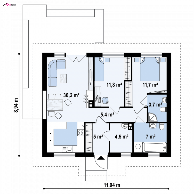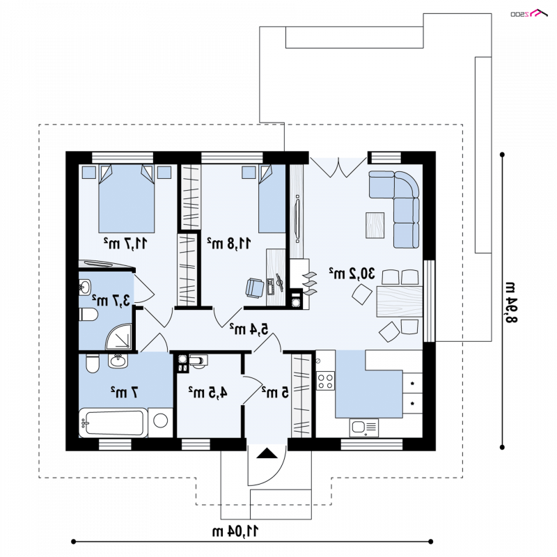 - Min. wymiary działki 16.94x18.04 m