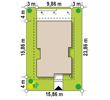 - Min. wymiary działki 23.86x15.96 m