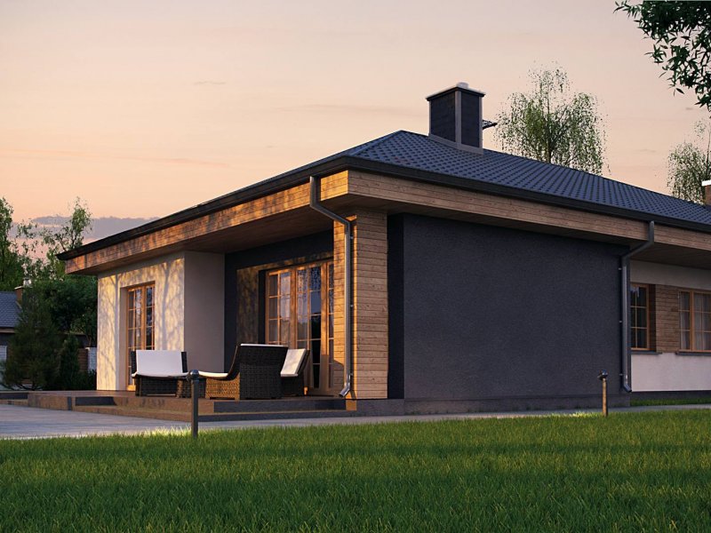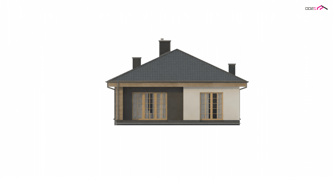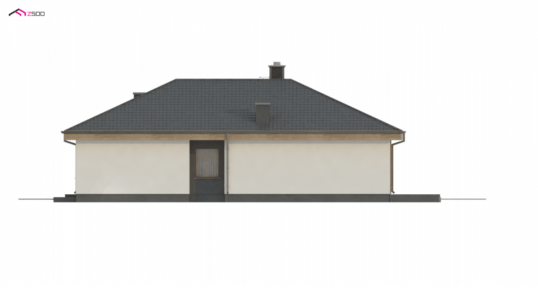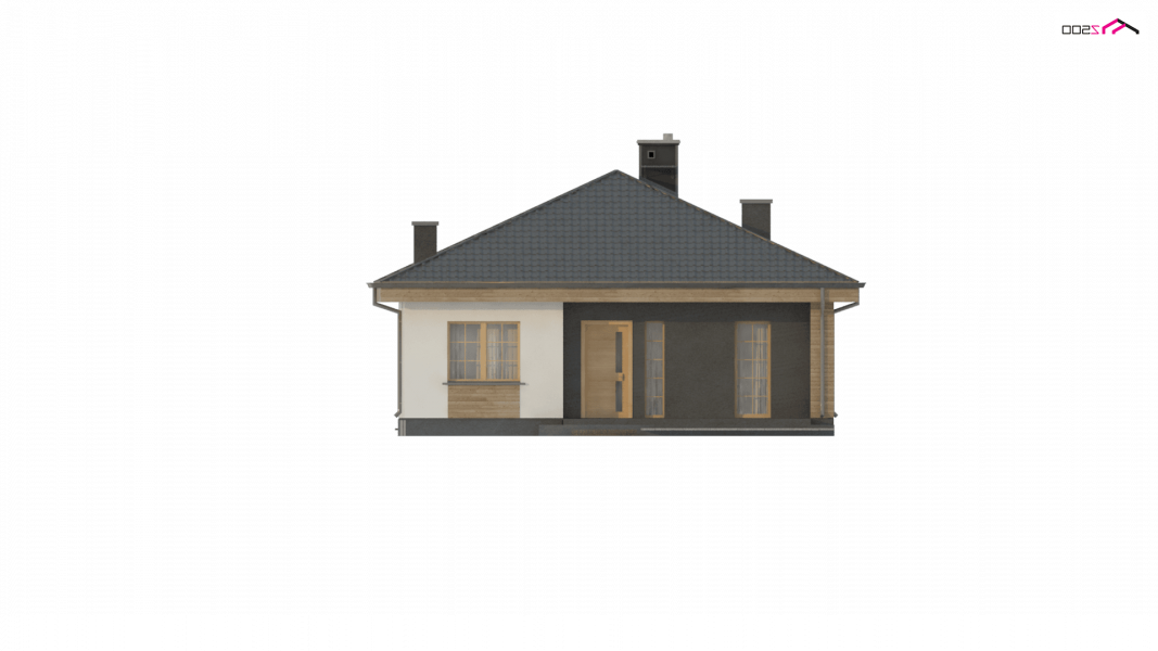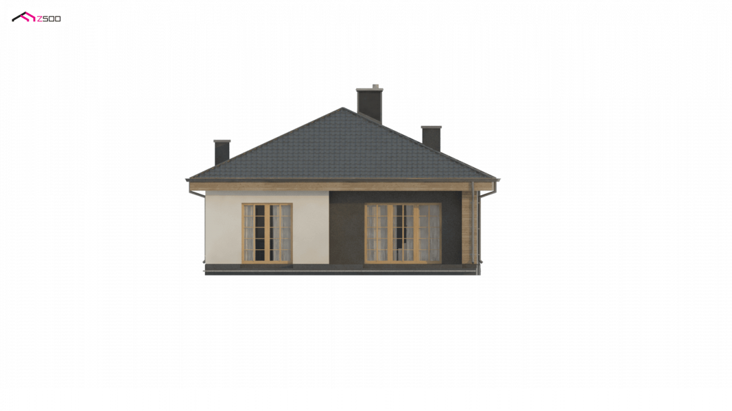 Jest domem parterowym, o czterospadowym dachu kopertowym i kalenicą prostopadłą do drogi. Dedykowany jest dla osób poszukujących projektu na wąską działkę. Prosta, klasyczna elewacja składa się z okładzin w postaci białego, cienkowarstwowego tynku oraz drewna nadającego efektu elegancji całości.