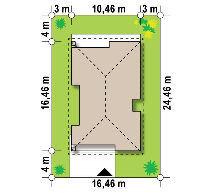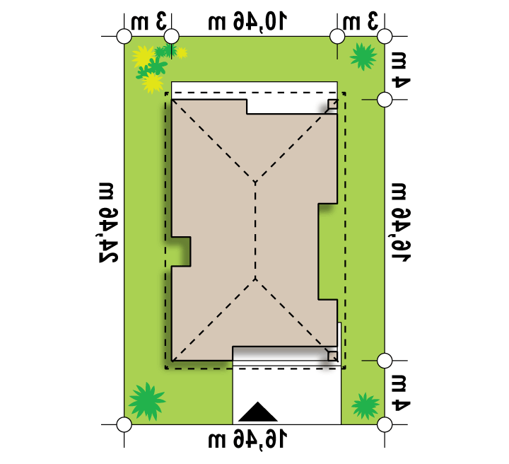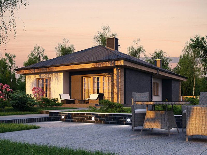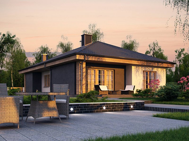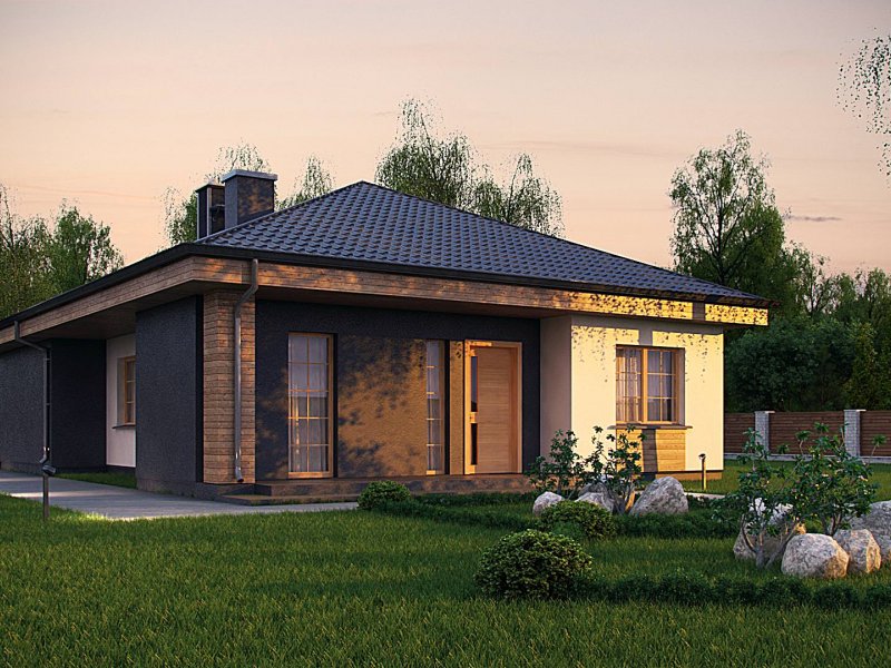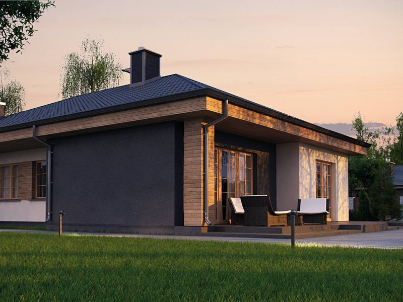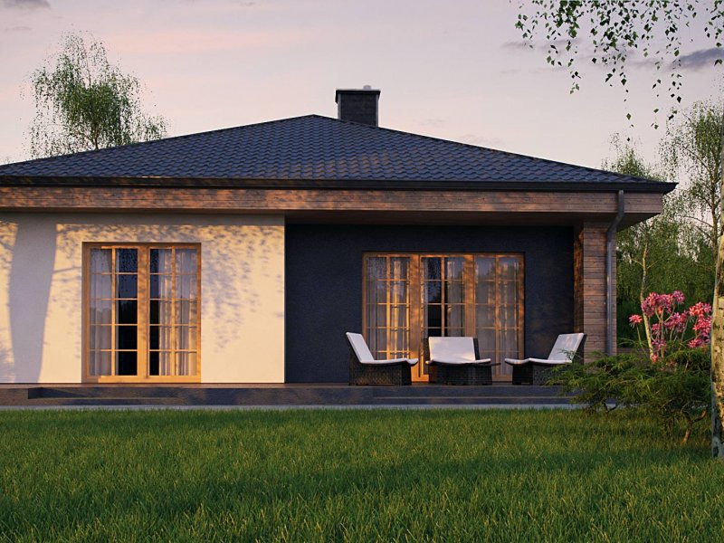 Jest domem parterowym, o czterospadowym dachu kopertowym i kalenicą prostopadłą do drogi. Dedykowany jest dla osób poszukujących projektu na wąską działkę. Prosta, klasyczna elewacja składa się z okładzin w postaci białego, cienkowarstwowego tynku oraz drewna nadającego efektu elegancji całości.