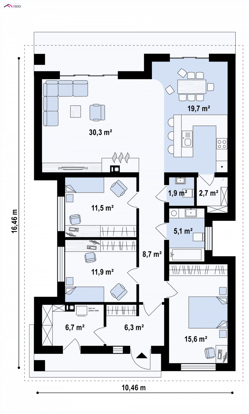 Projekt Z356 stanowi dobry wariant domu dla młodych małżeństw, które dopiero wkraczają w życie rodzinne.