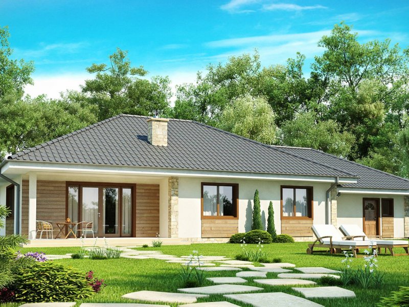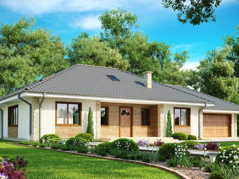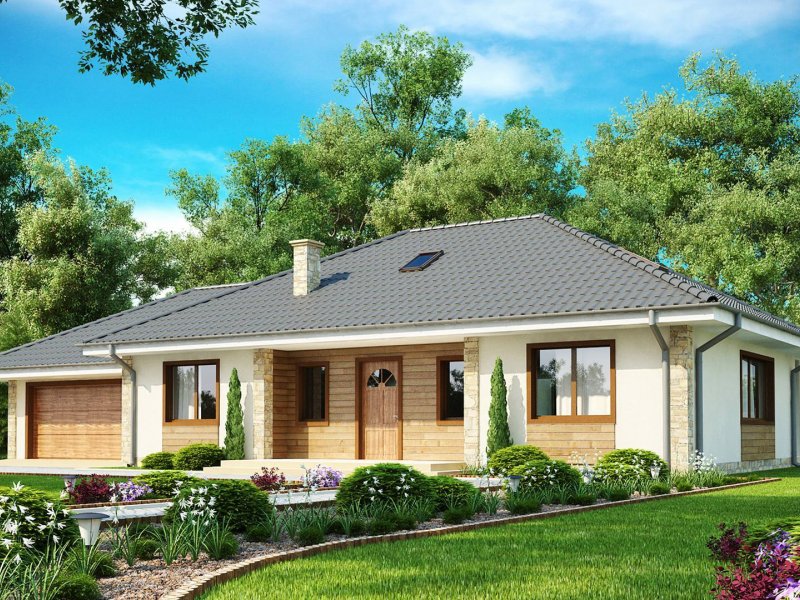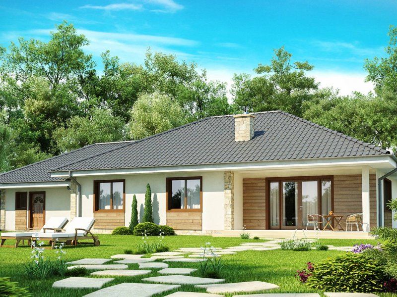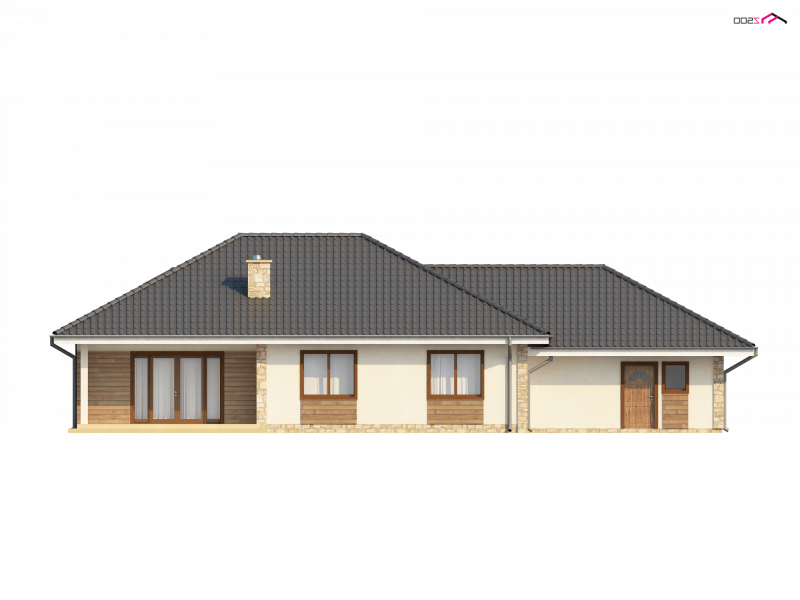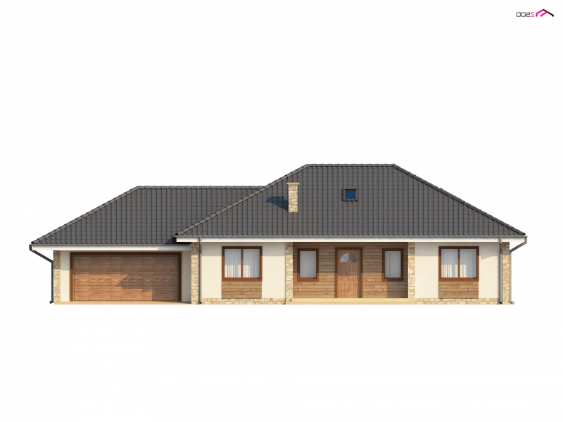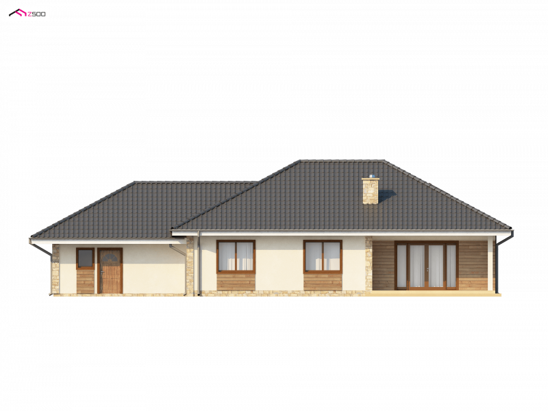 Z35 to tradycyjny projekt parterowego domu jednorodzinnego. Cechuje go niezwykła dbałość o detale oraz ciekawa kolorystyka. Subtelne połączenie kamienia z drewnianą elewacją tworzy niebywałe i niepowtarzalne zestawienie.