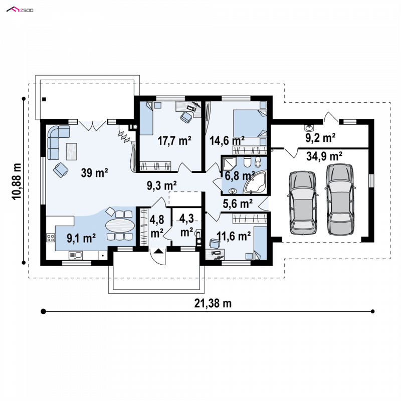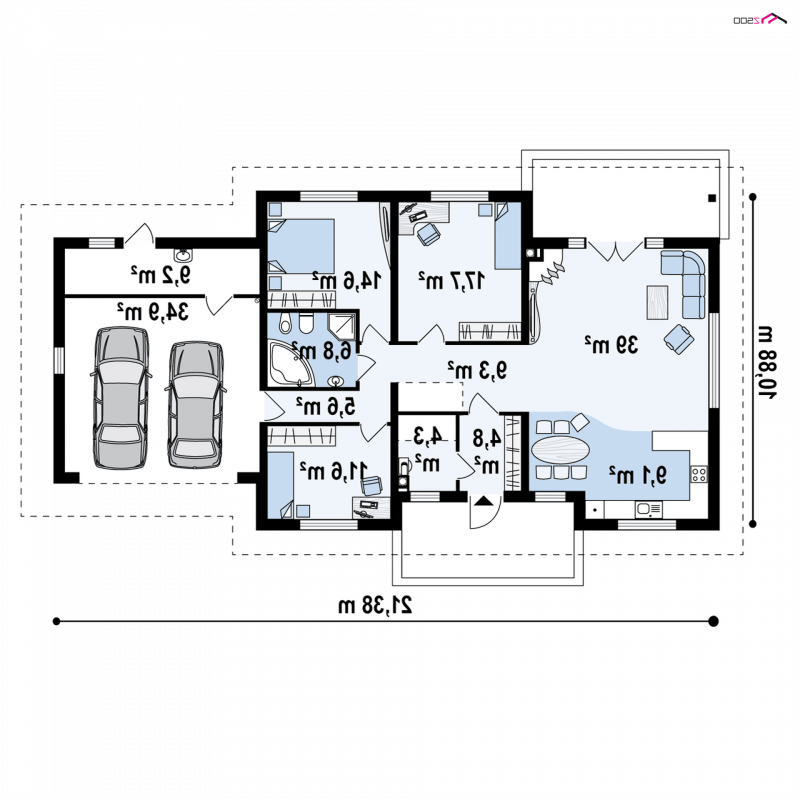 Projekt Z35 to wspaniała propozycja domu na lata. Jego parterowe położenie i funkcjonalny układ zadowoli zarówno młode jak i starsze pokolenie.