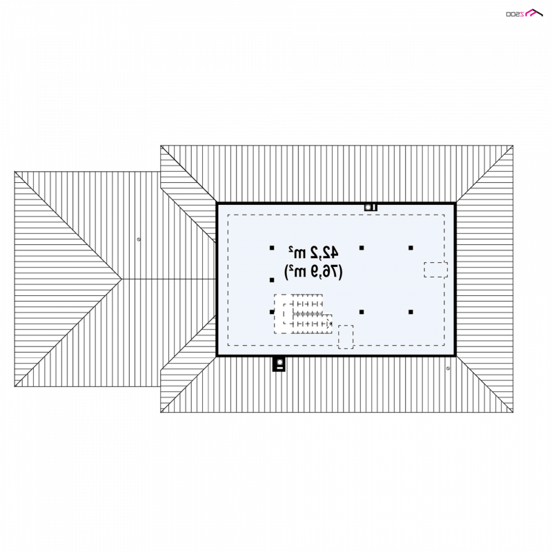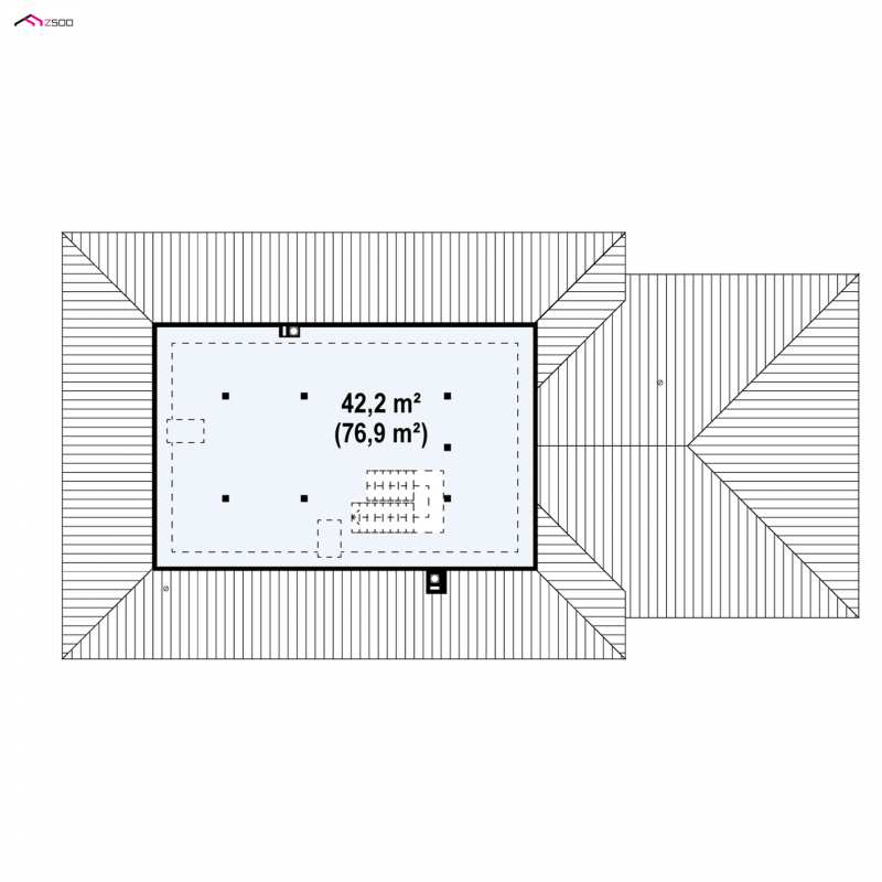 Projekt posiada przestronny, jasny salon połączony z kuchnią. Narożnie usytuowany kominek doskonale podkreśla charakter domu. Duże przeszklenia naturalnie doświetlą wnętrze. W domu znajdują się trzy wygodne pokoje sypialniane. Komfortowo urządzone, będą świetnym miejscem relaksu i wieczornego odpoczynku. Duża łazienka pomieści wygodną wannę, prysznic i całą niezbędną ceramikę. Projekt domu zawiera także garaż dwustanowiskowy oraz pomieszczenie gospodarcze z dostępem od zewnątrz. Poddasze można w łatwy sposób zaadoptować i zyskać dodatkowy pokój.