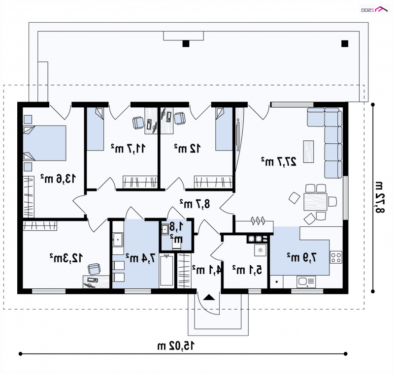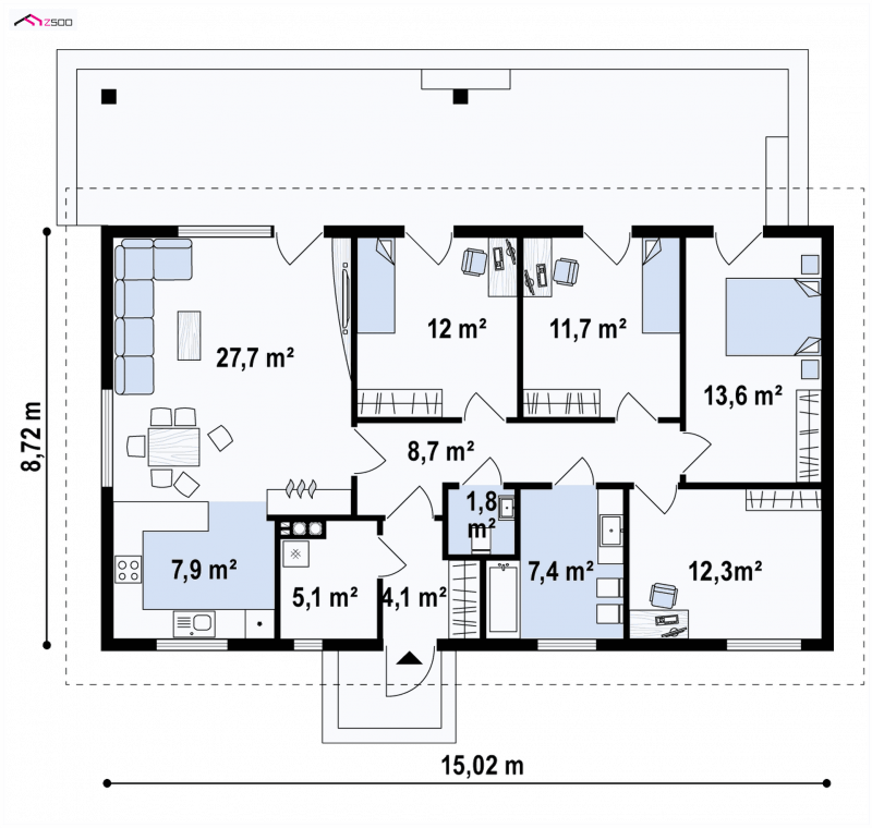 Projekt Z376 jest propozycją domu dla rodziny z dwojgiem lub trojgiem dzieci.