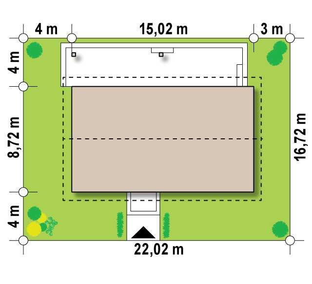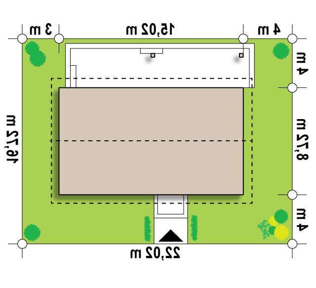 - Min. wymiary działki 16.72x22.02 m
