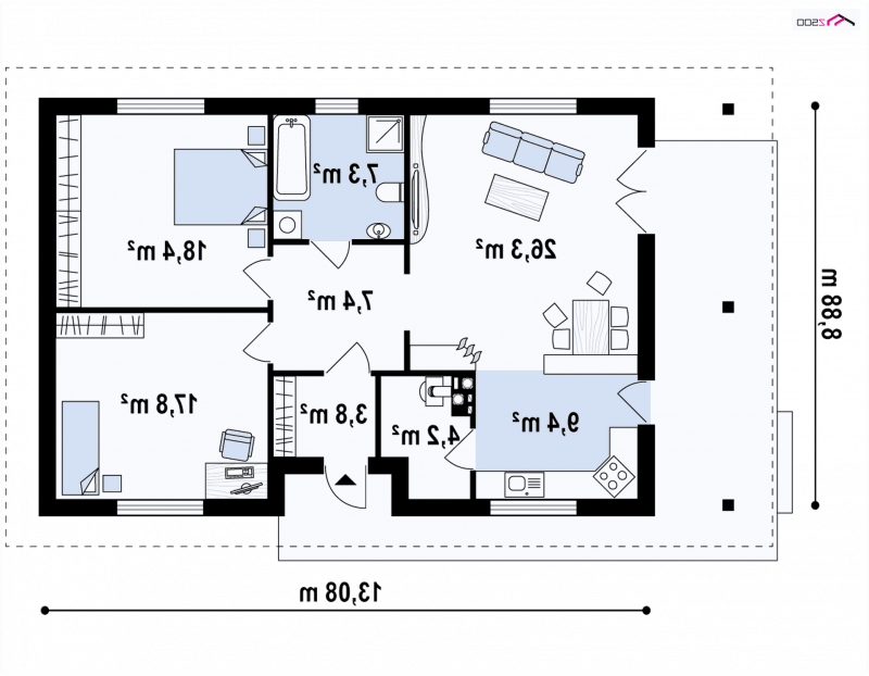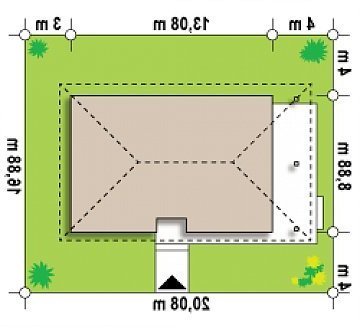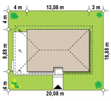 - Min. wymiary działki 16.88x20.08 m