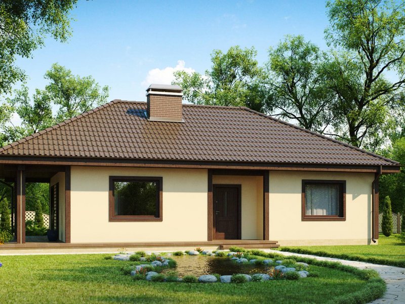 Projekt Z55 to prosty w formie, tani w budowie dom, który dobrze sprawdzi się na działce z frontową lub boczną ekspozycją słońca. Kopertowy dach o ekonomicznej konstrukcji wiązarowej, która nie wymaga wewnętrznych ścian nośnych, pozwala na niemal dowolną aranżację powierzchni we wnętrzu.