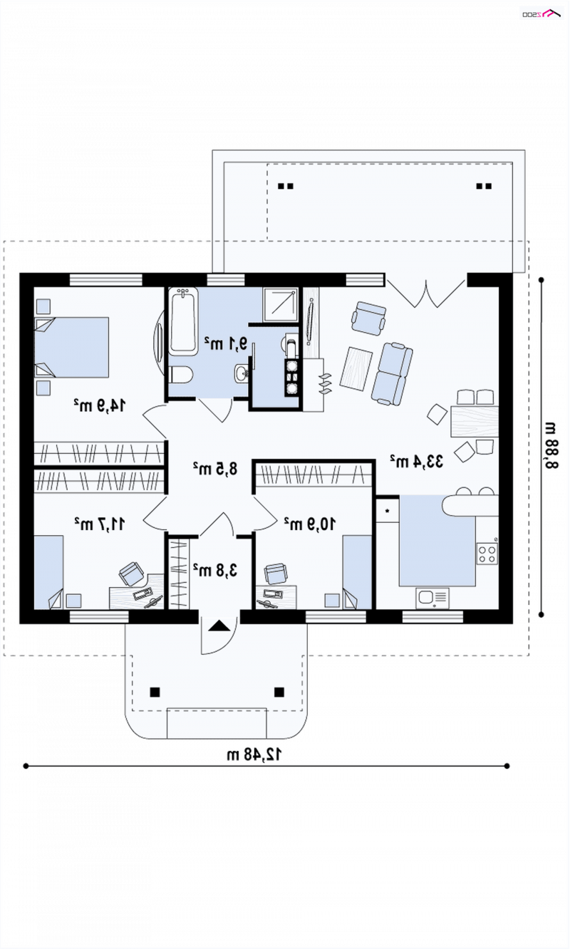 - Min. wymiary działki 16.88x18.48 m