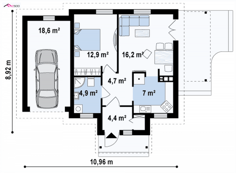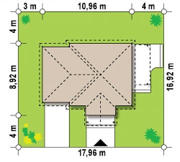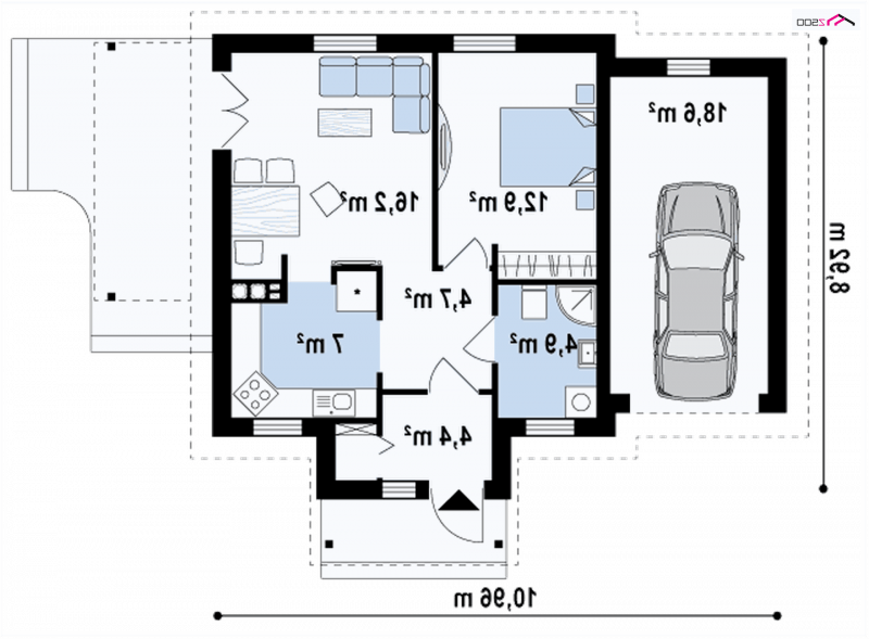 Wariant w odbiciu lustrzanym z garażem po lewej stronie.