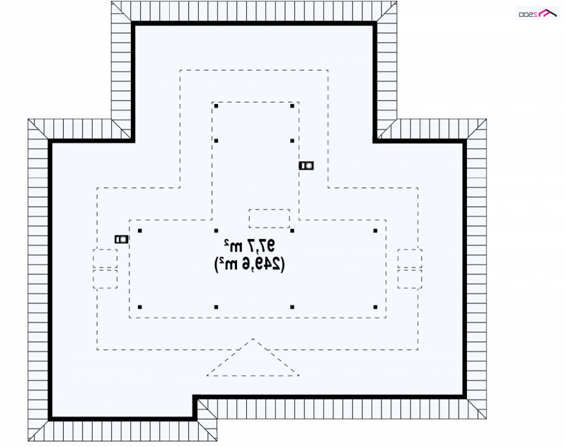Ukrytą zaletą projektu Z77 jest możliwość adaptacji i wykorzystanie poddasza. Konstrukcja stropu przewiduje takie rozwiązanie i aby zapewnić optymalną komunikację schody można wykonać w holu.