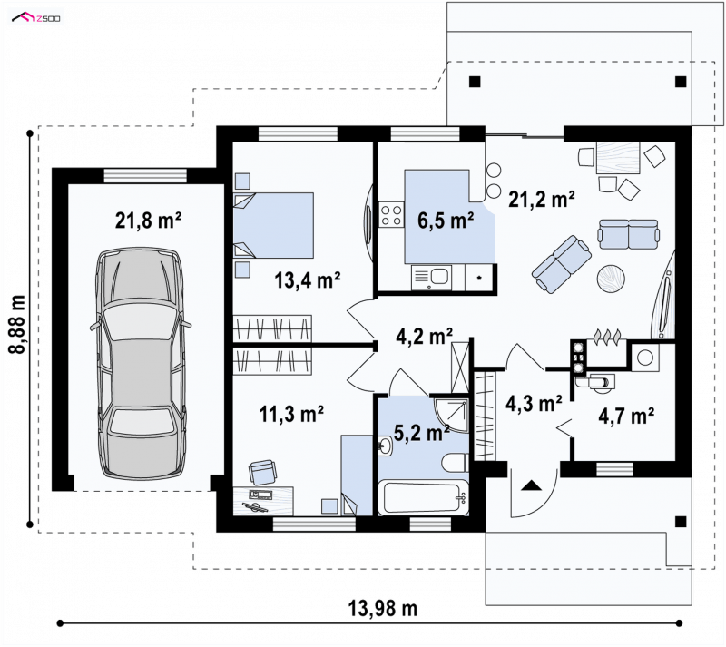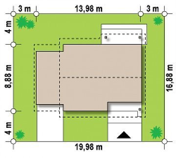 - Min. wymiary działki 16.96x19.98 m