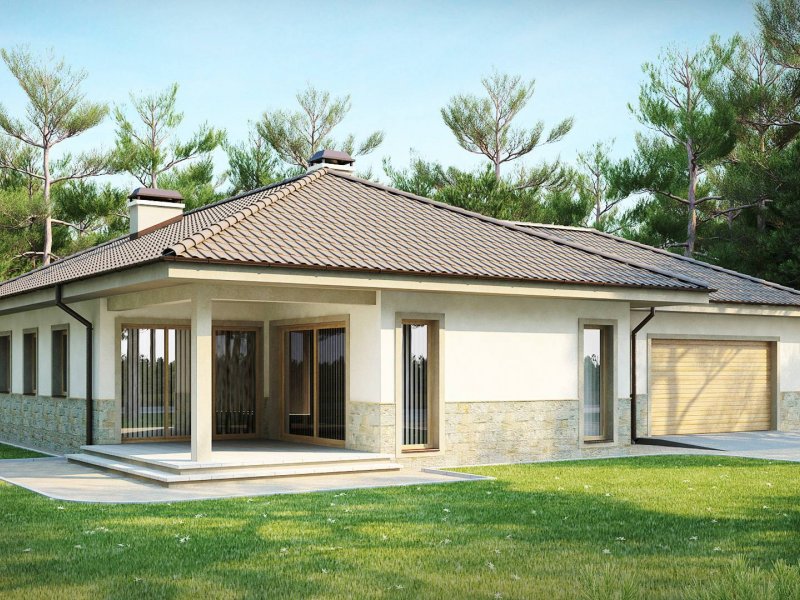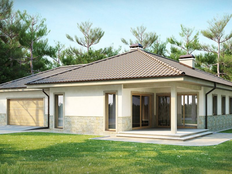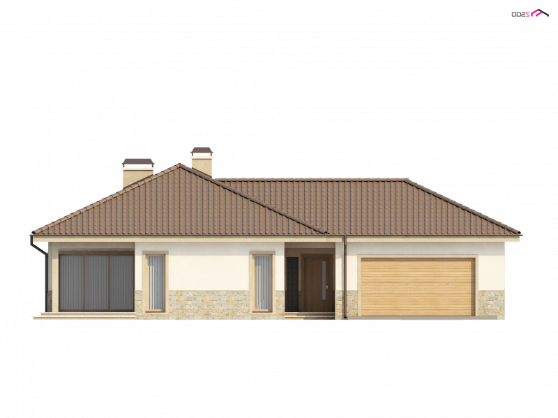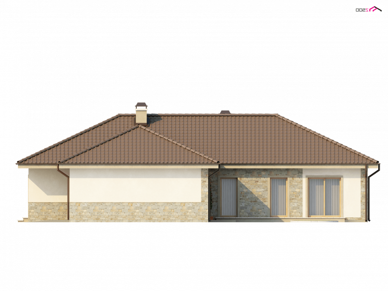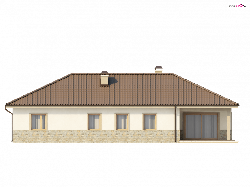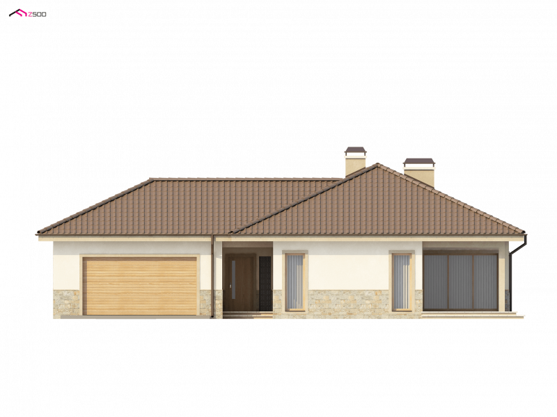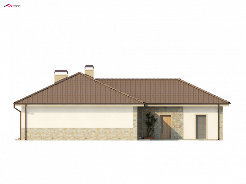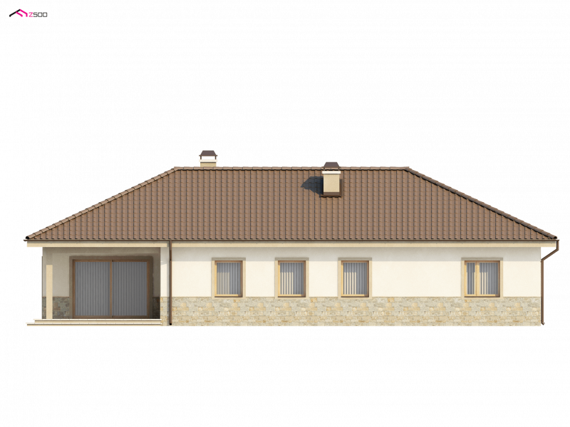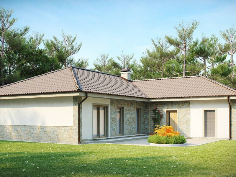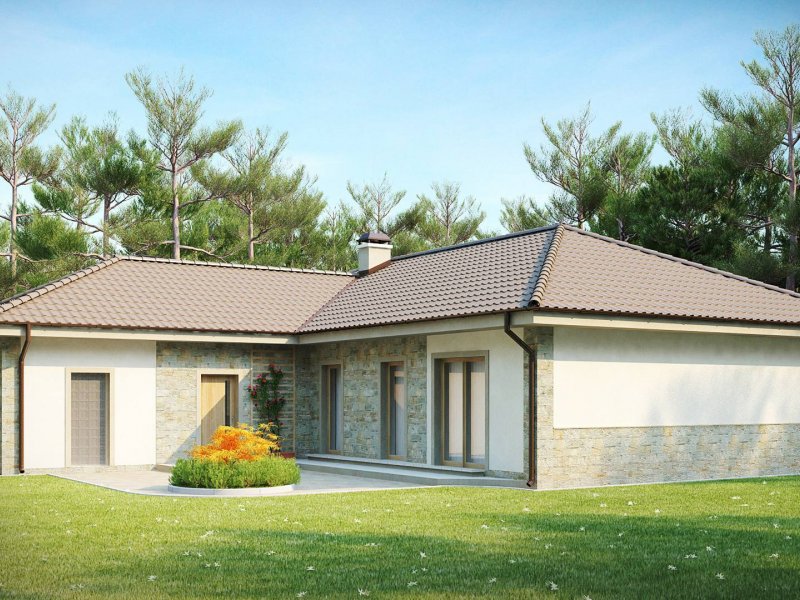 Projekt Z80 to dom o prostej, parterowej bryle z subtelnym detalem wykończenia elewacji w postaci naturalnej okładziny kamiennej. Jest to budynek, który klimatem nawiązuje do architektury skandynawskiej.