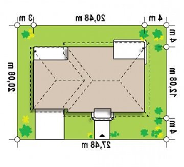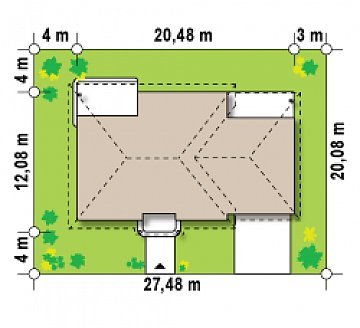 - Min. wymiary działki 20.08x27.48 m