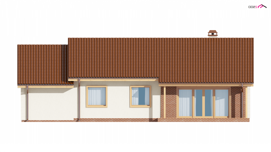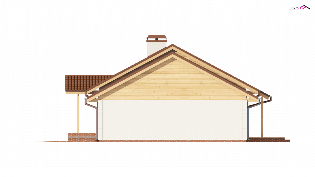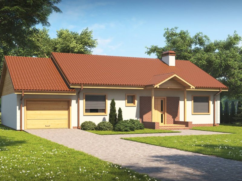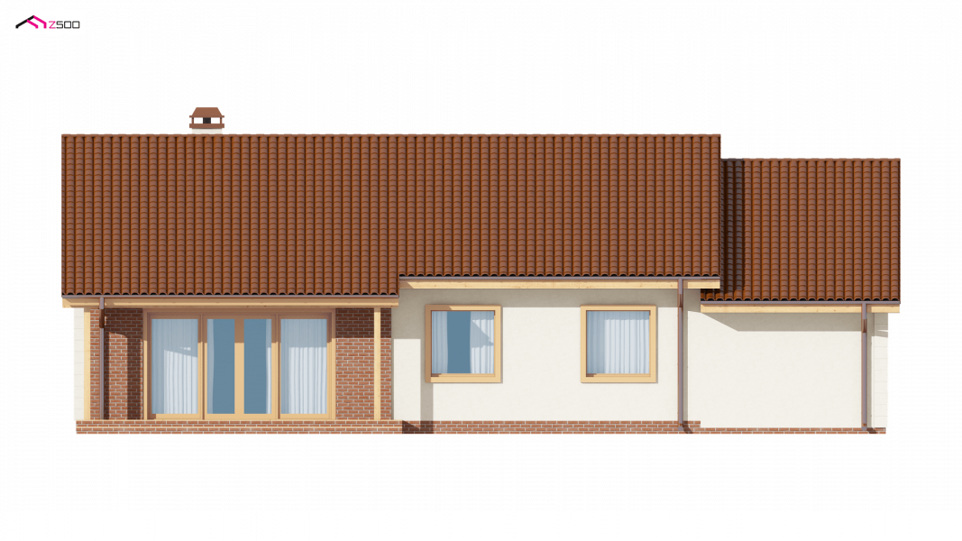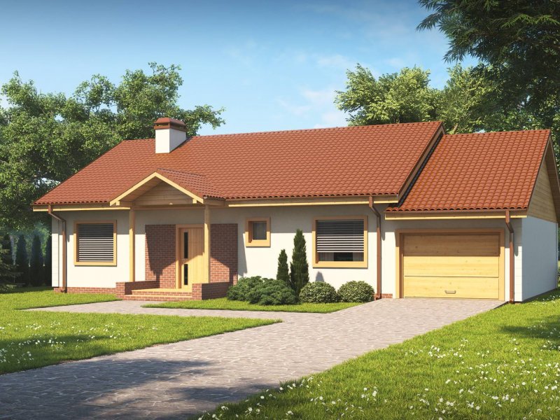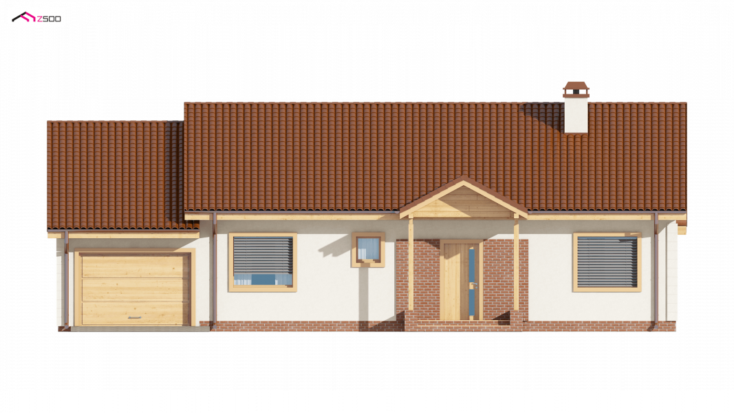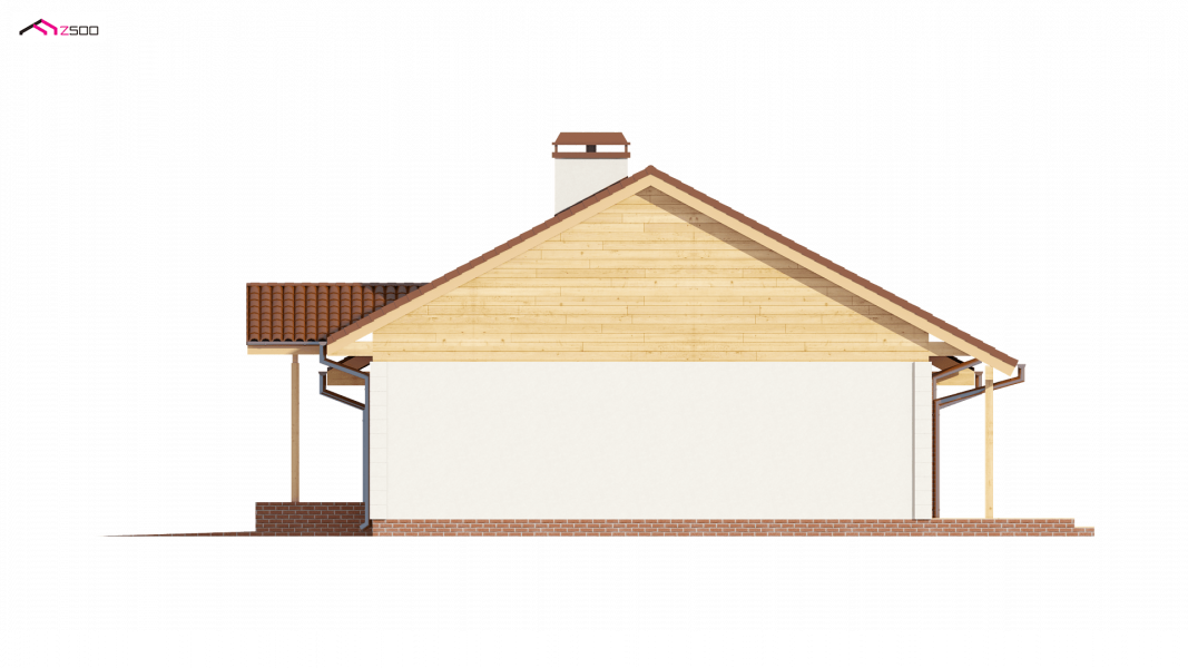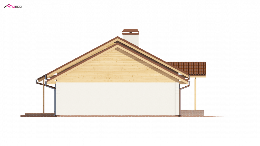 Projekt Z91 GL jest domem parterowym z dachem dwuspadowym, prostym a zarazem tanim w realizacji. Urok dodaje klasyczny podcień wejściowy podparty dwoma słupami.
