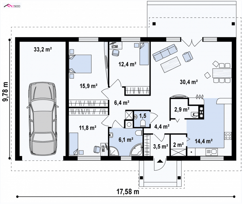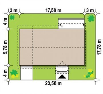 - Min. wymiary działki 17.78x23.58 m