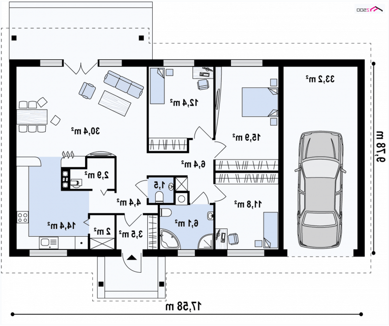 Z91 GL to wariant z garażem po lewej stronie.