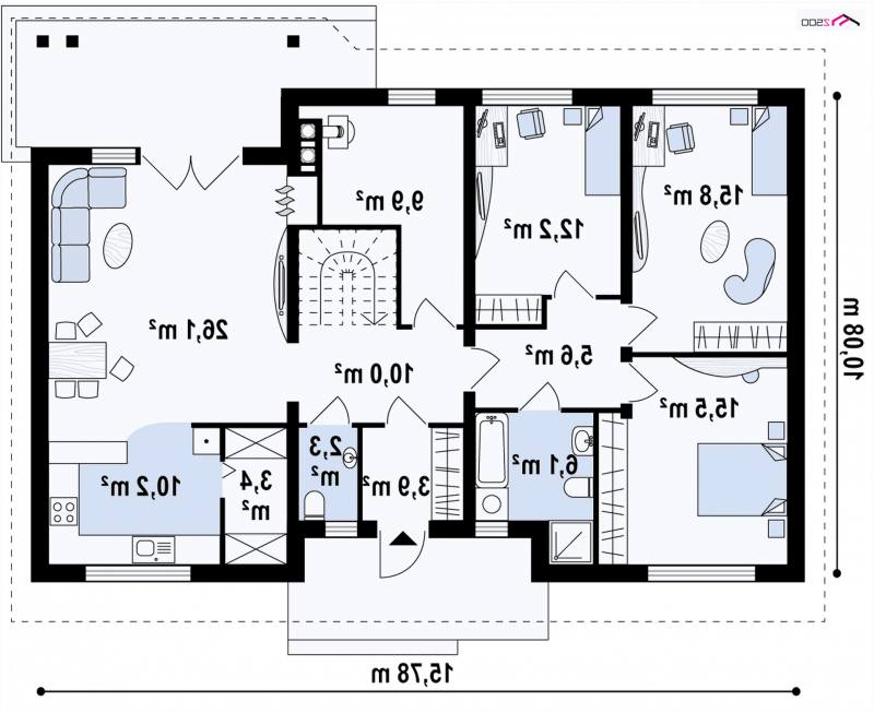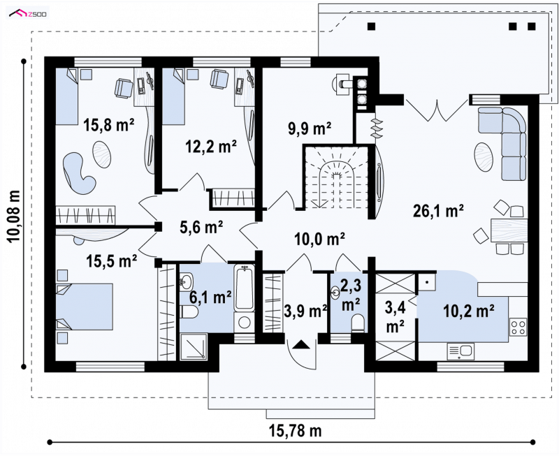 W projekcie Z98 pomimo niewielkiej powierzchni zawarte zostały wszystkie niezbędne pomieszczenia do funkcjonowania rodziny, a jego niewielkie rozmiary stanowią niewątpliwą zaletę przy realizacji oraz eksploatacji. Mała powierzchnia zabudowy pozwoli na umiejscowienie tego budynku na niewielkiej działce.