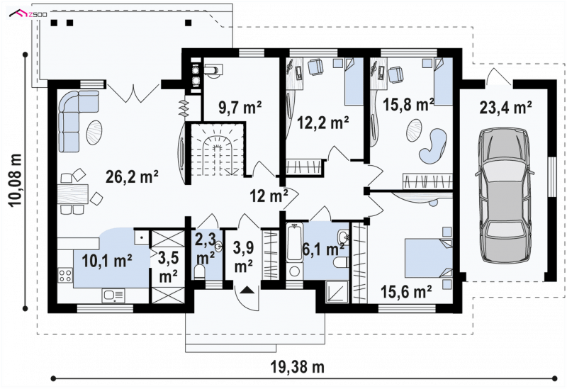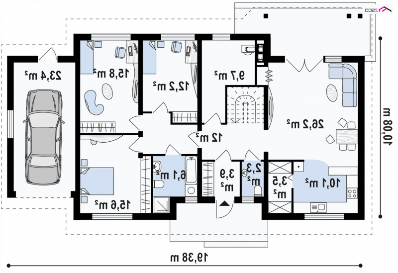 Podwariant w wersji odbicia lustrzanego z garażem po prawej stronie.