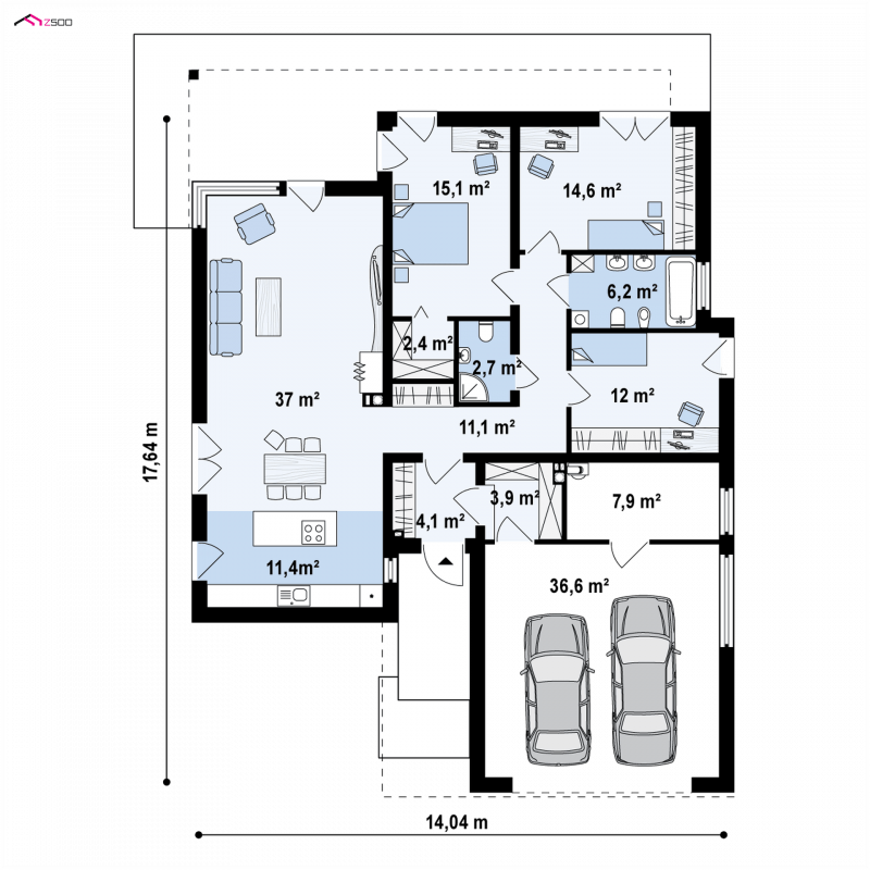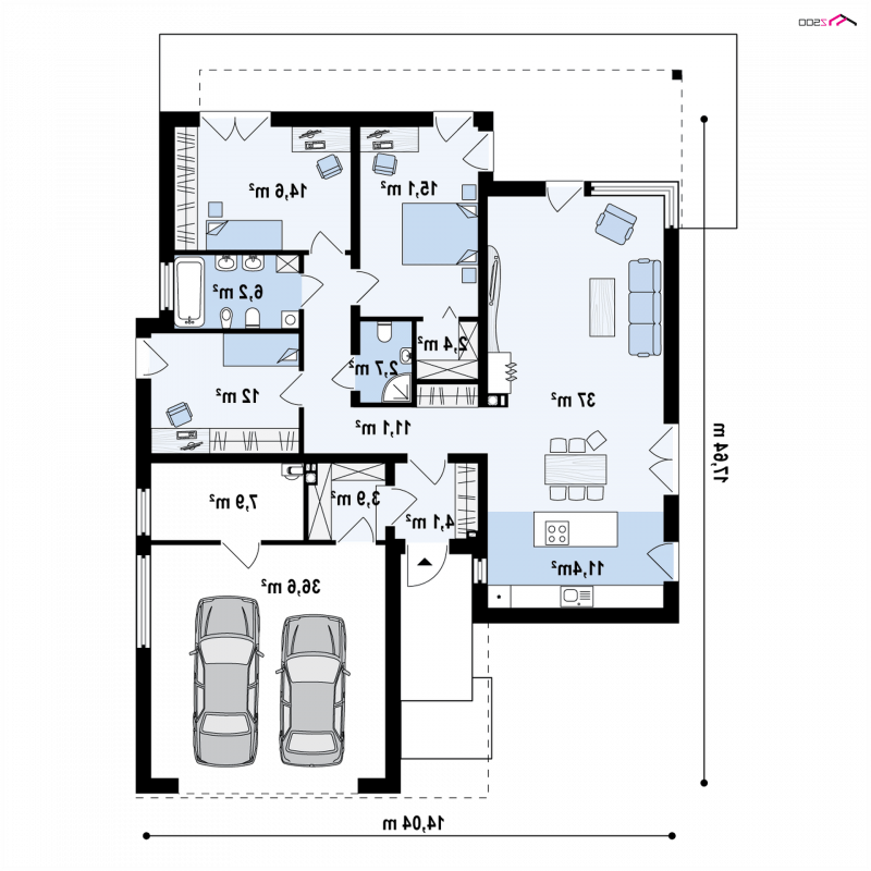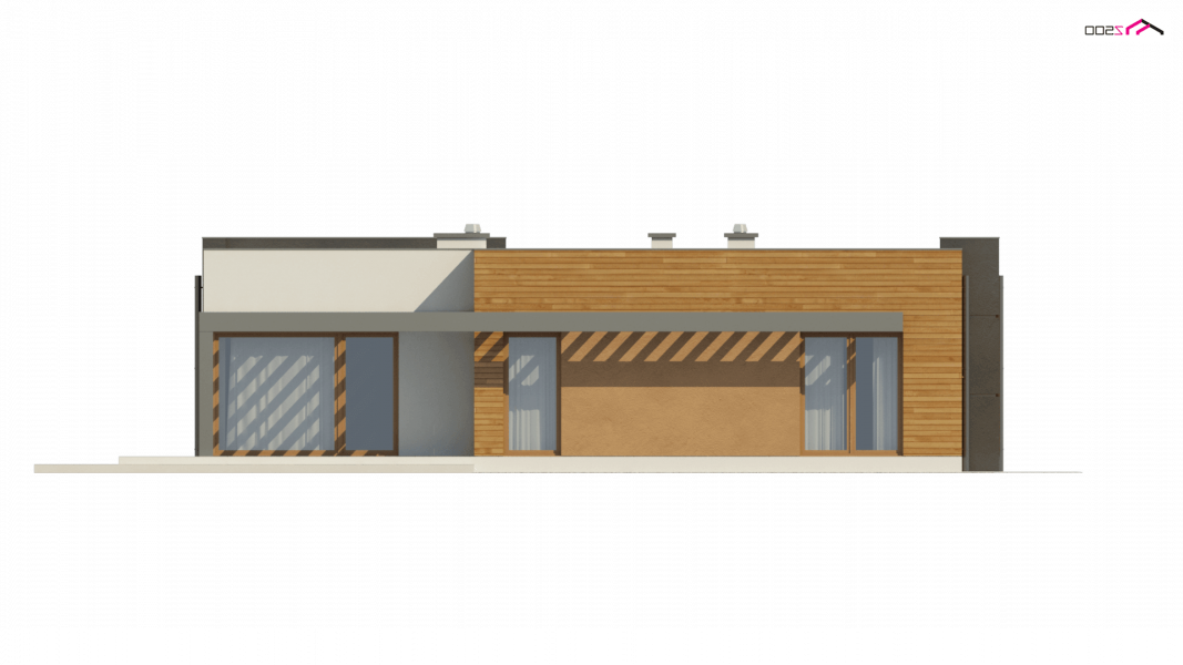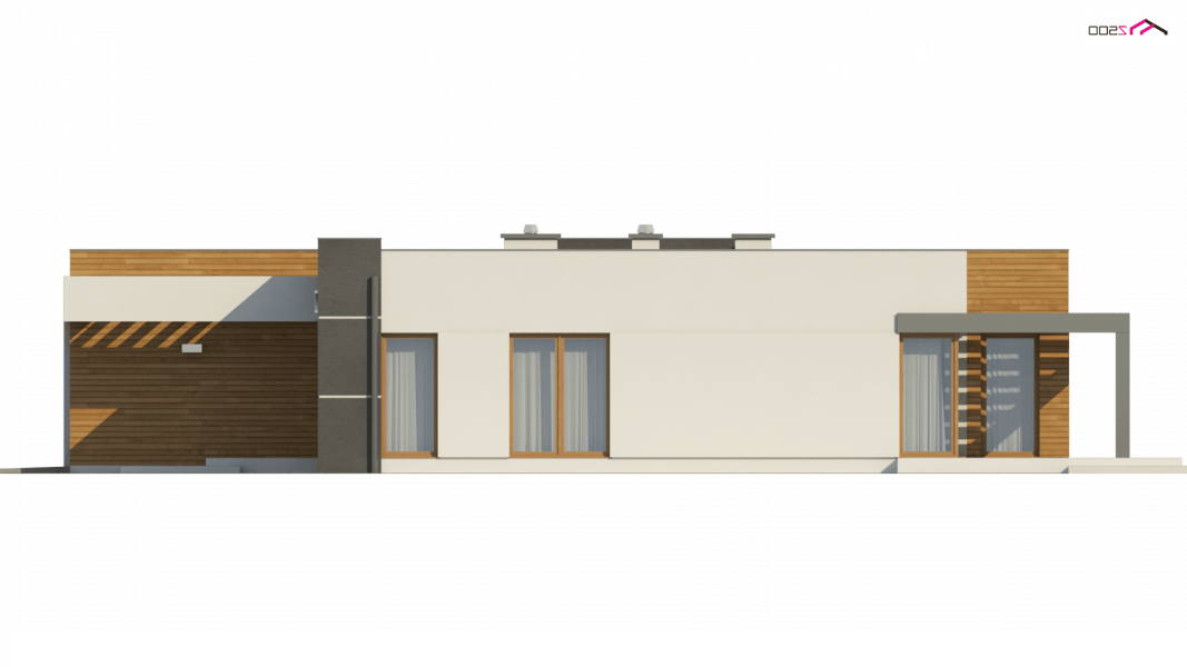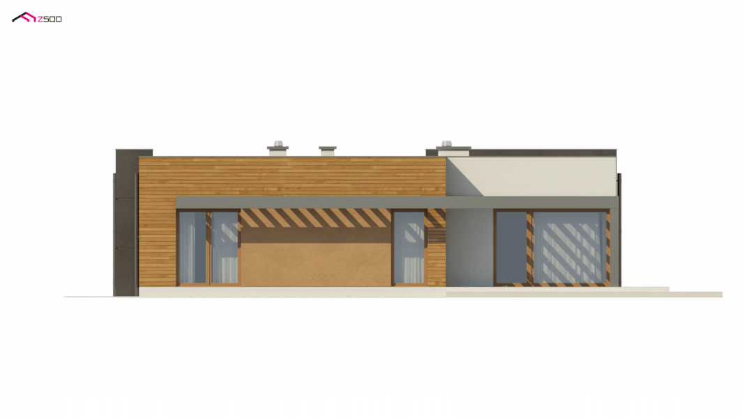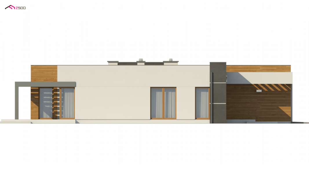 Zx100 to nowoczesny parterowy dom z dwustanowiskowym garażem w modernistycznym stylu.