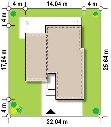 - Min. wymiary działki 25.64x22.04 m