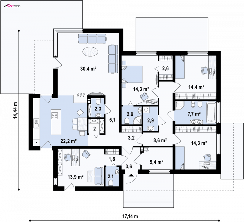 Zx101 to komfortowy dom z płaskim dachem o modernistycznym charakterze.