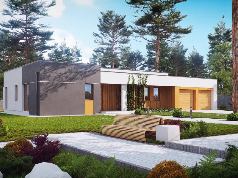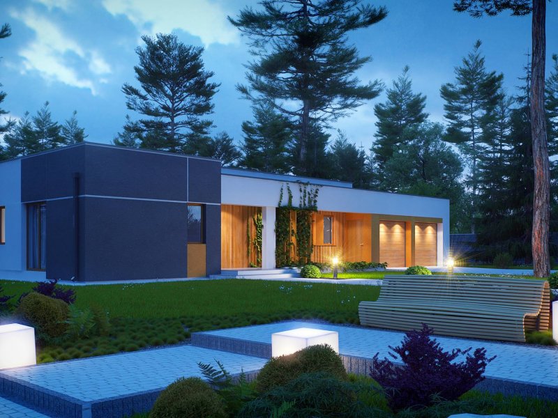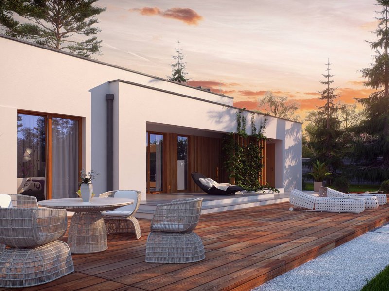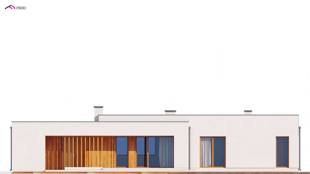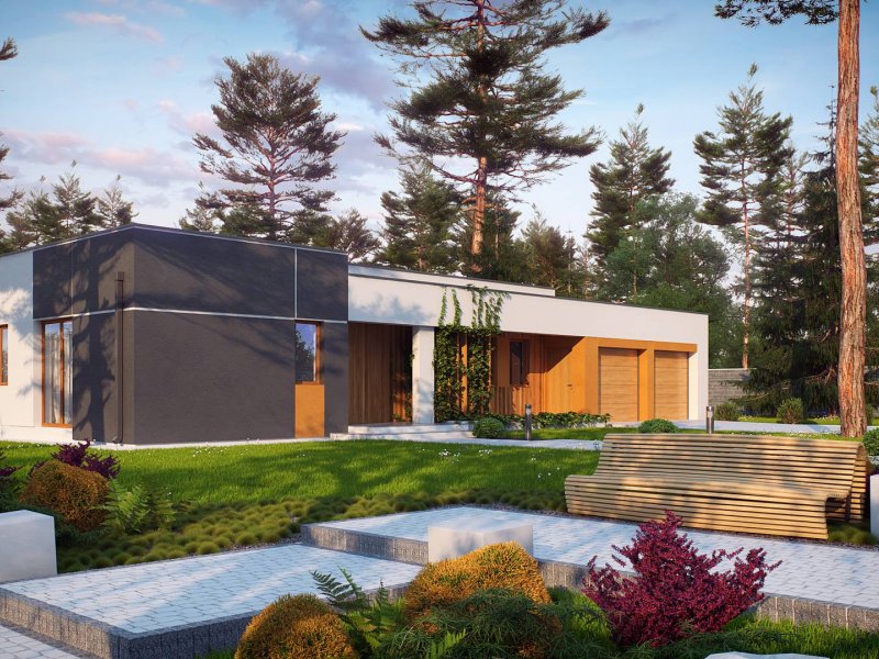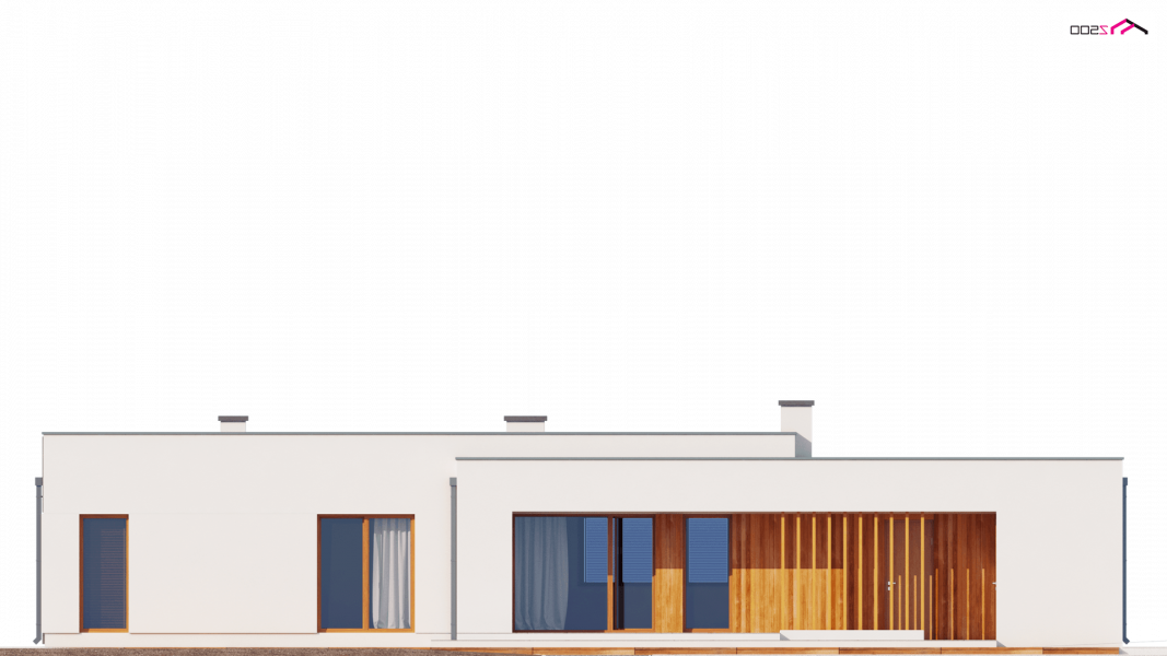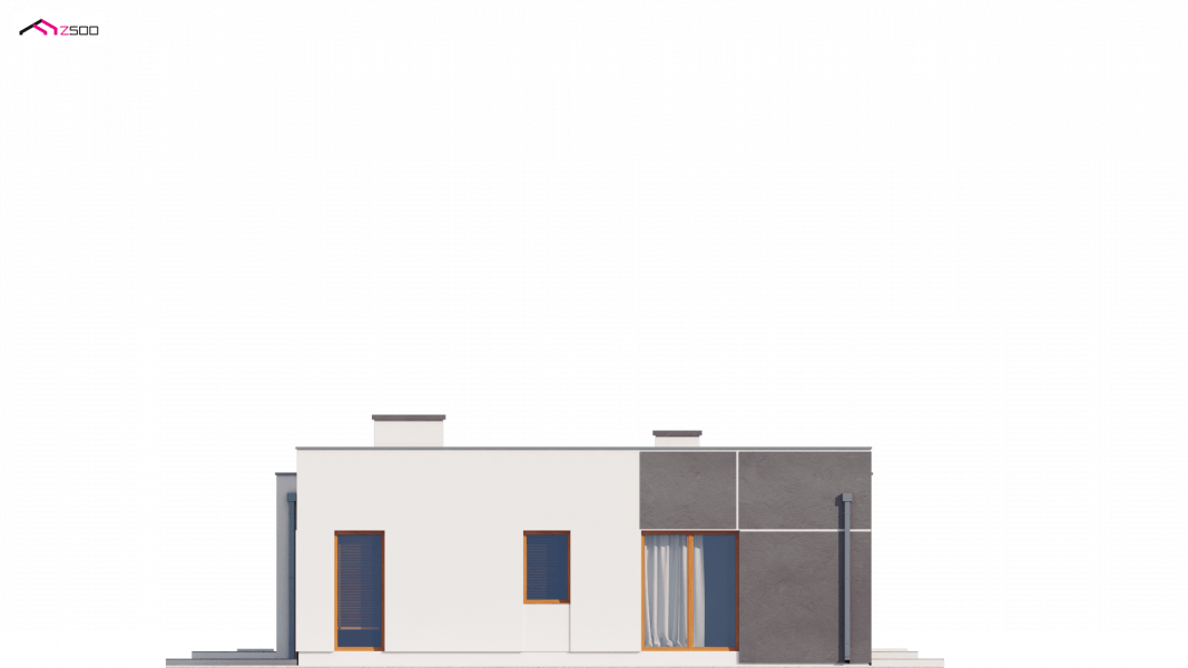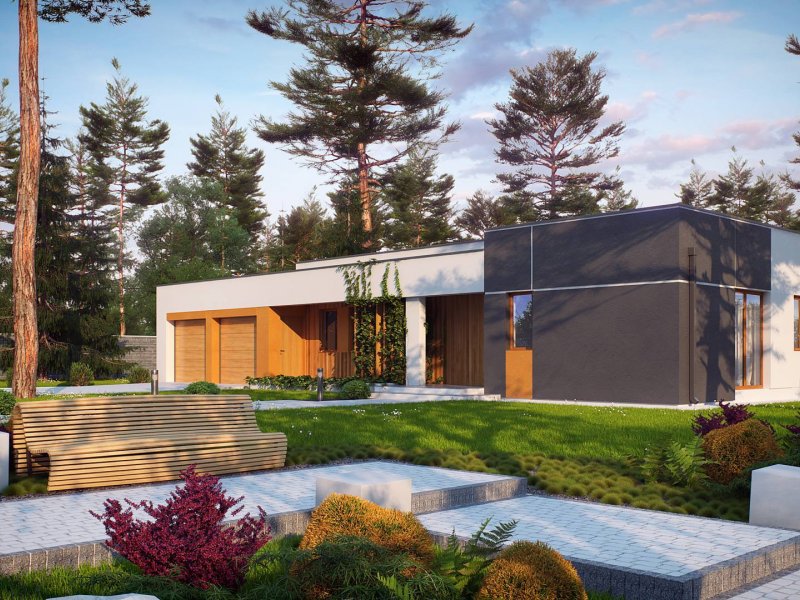 Zx102 to nowoczesny dom parterowy z kolekcji Parto w eleganckim, modernistycznym stylu. Prostą, kubiczną formę urozmaicają podcienie od strony wejścia oraz salonu - znakomite miejsce do odpoczynku.