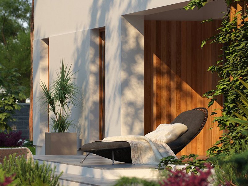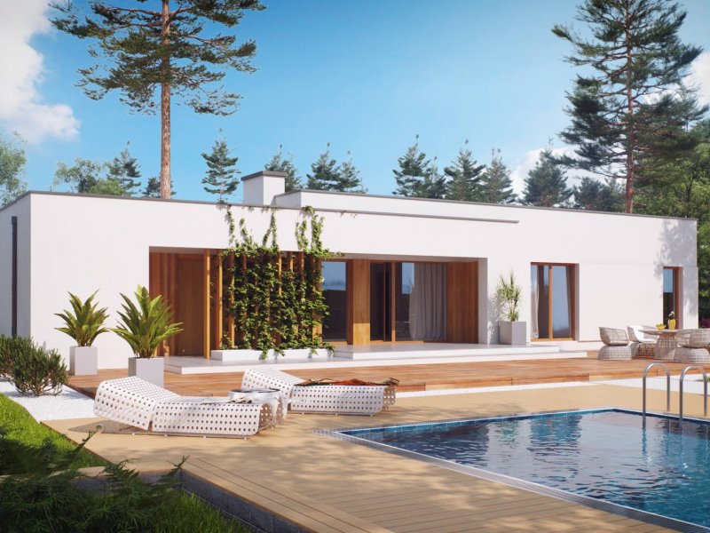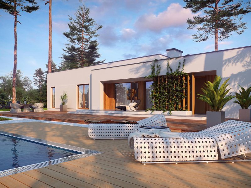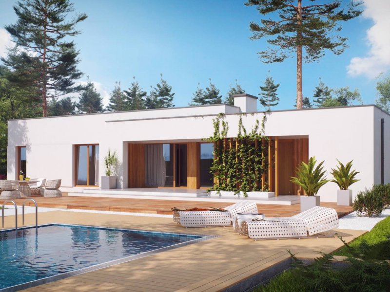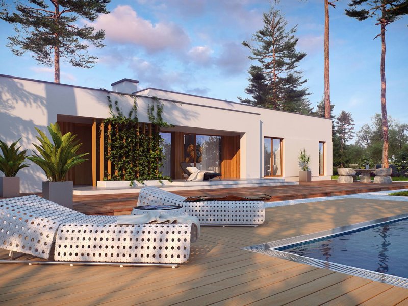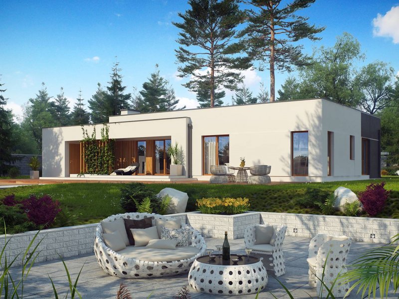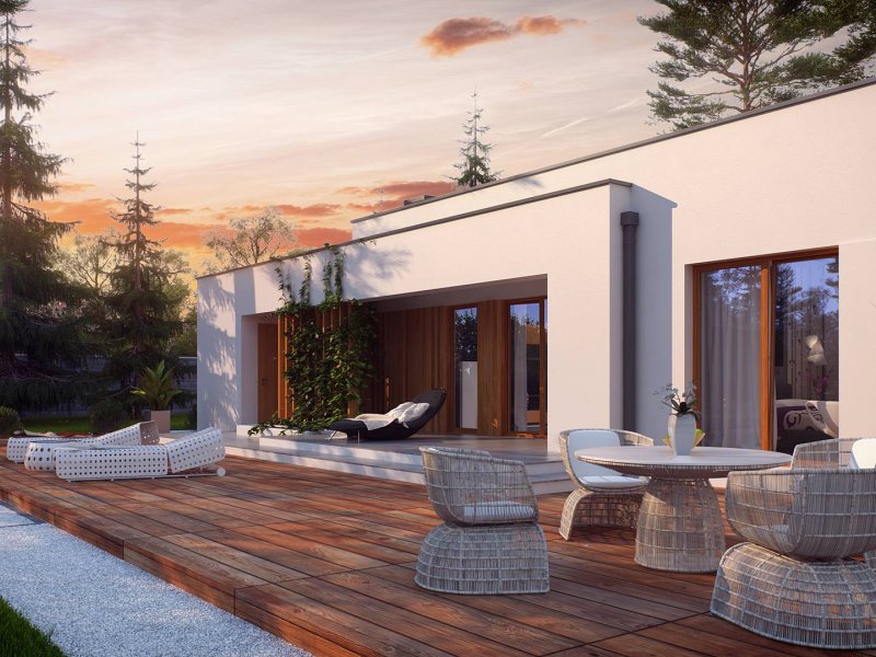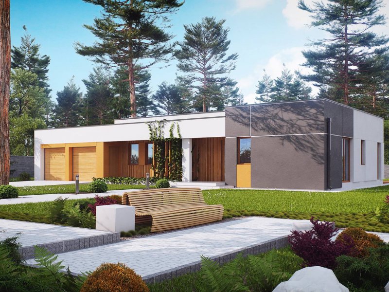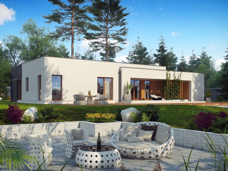Zx102 to nowoczesny dom parterowy z kolekcji Parto w eleganckim, modernistycznym stylu. Prostą, kubiczną formę urozmaicają podcienie od strony wejścia oraz salonu - znakomite miejsce do odpoczynku.