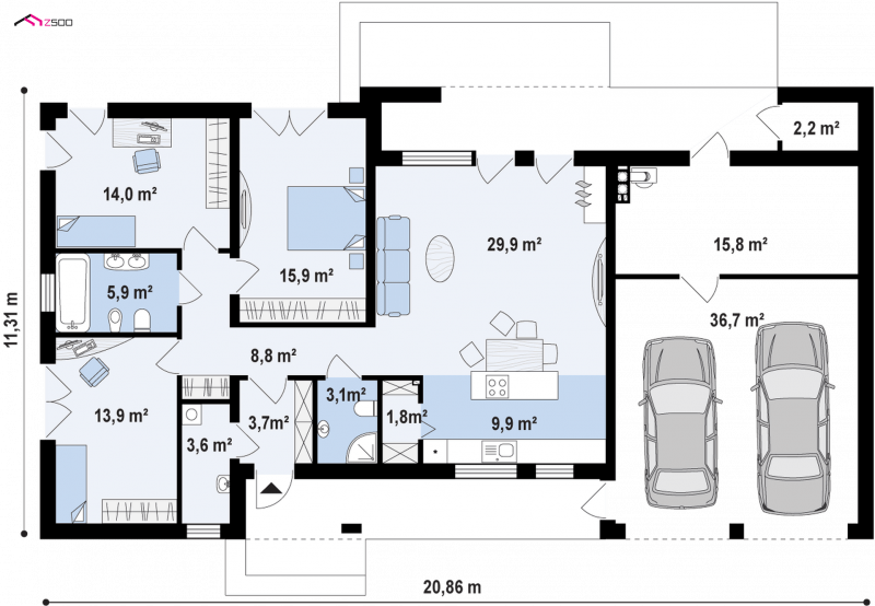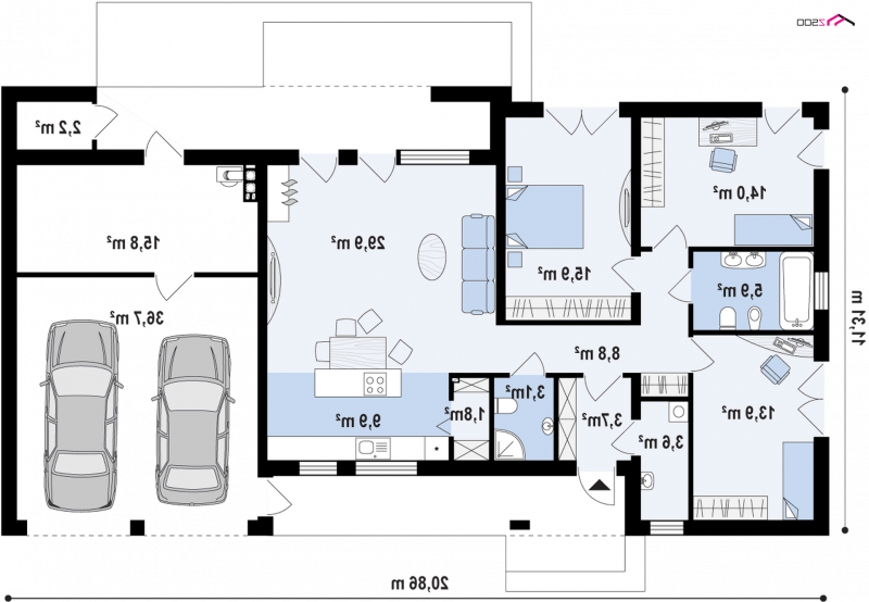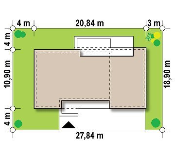 - Min. wymiary działki 19.31x27.86 m