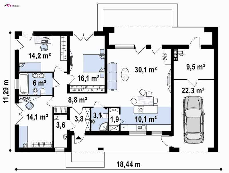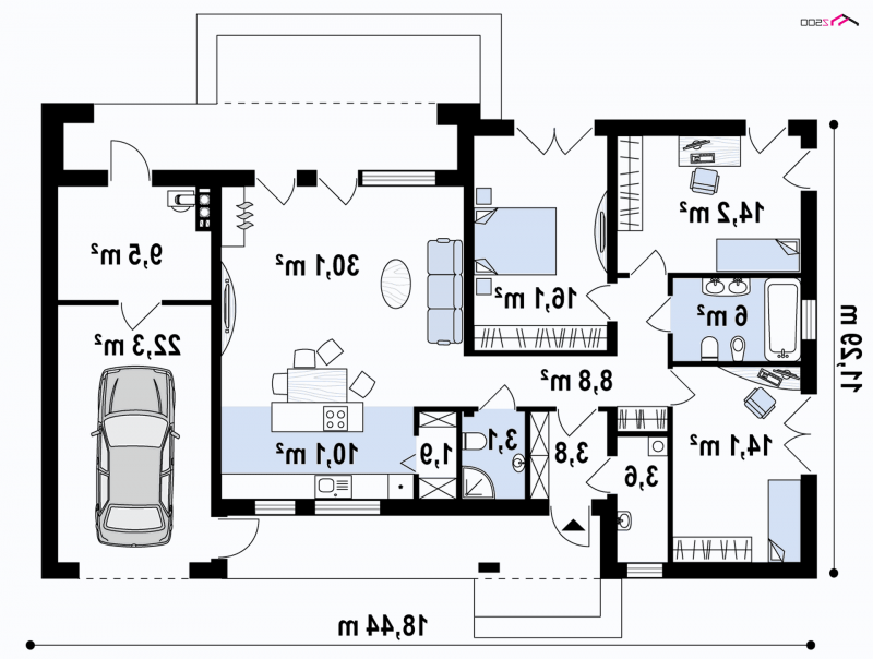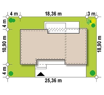 - Min. wymiary działki 19.29x25.44 m