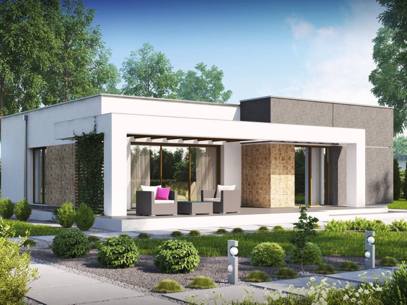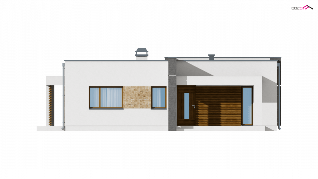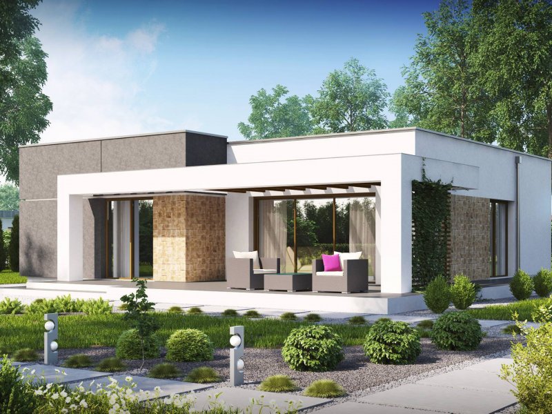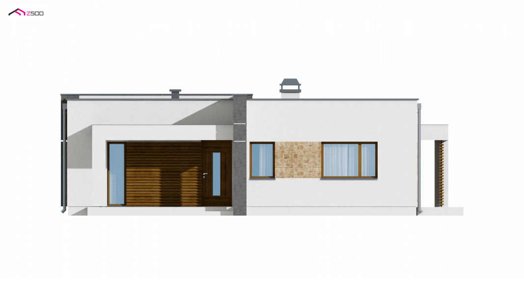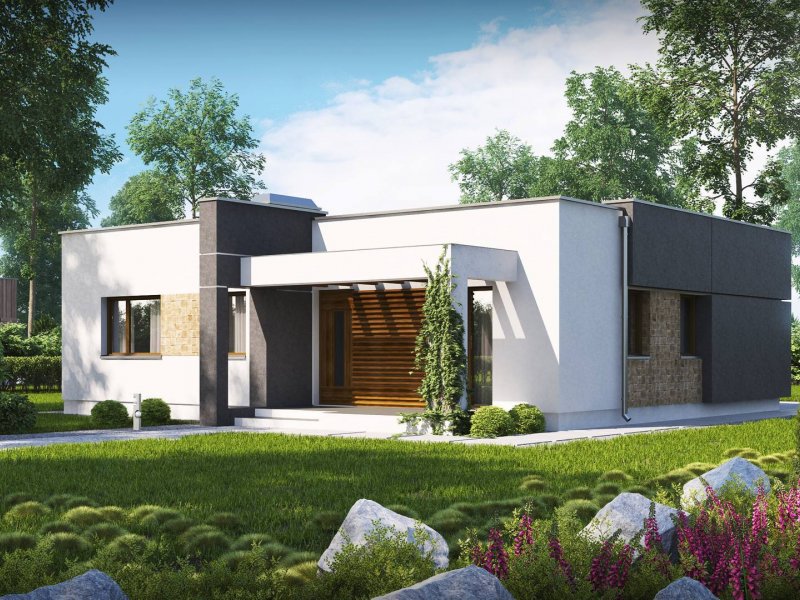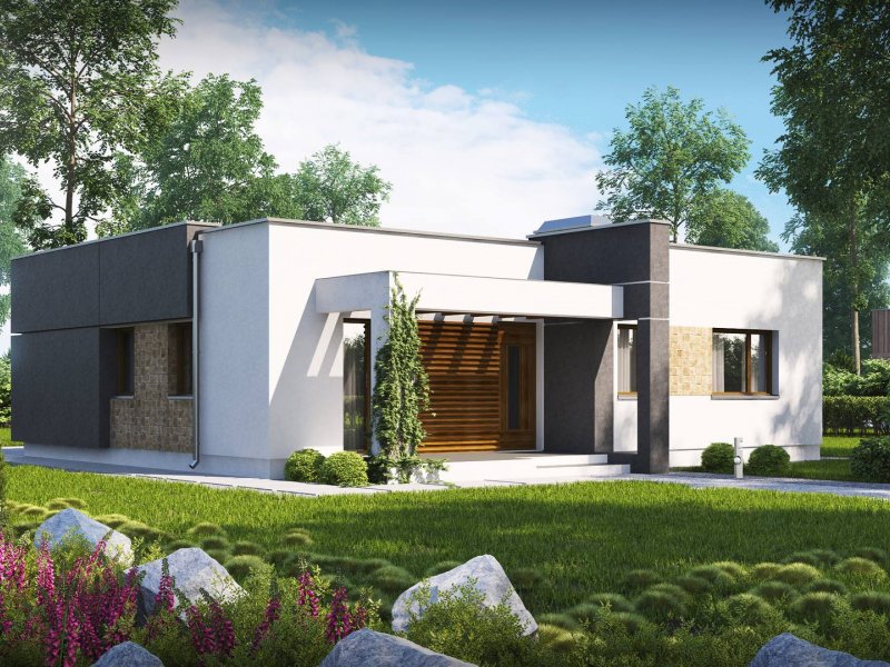 Zx105 to kompaktowy dom parterowy z płaskim dachem dla 2-3 osobowej rodziny.