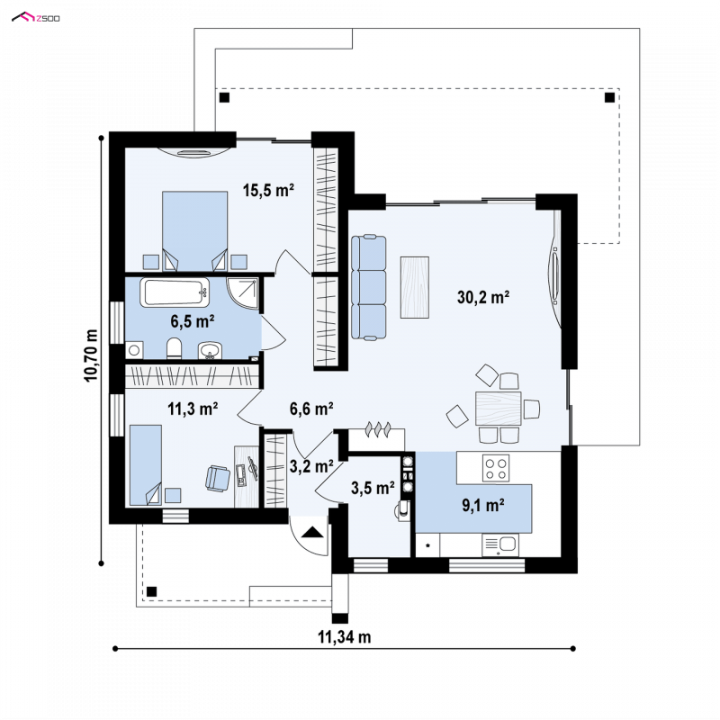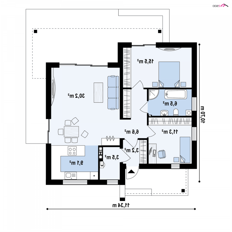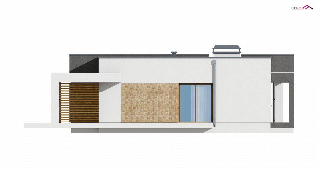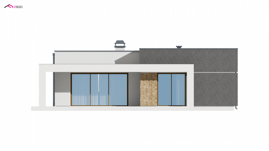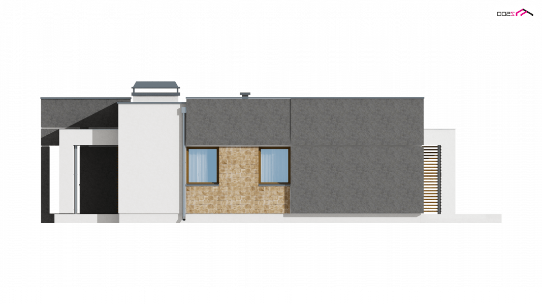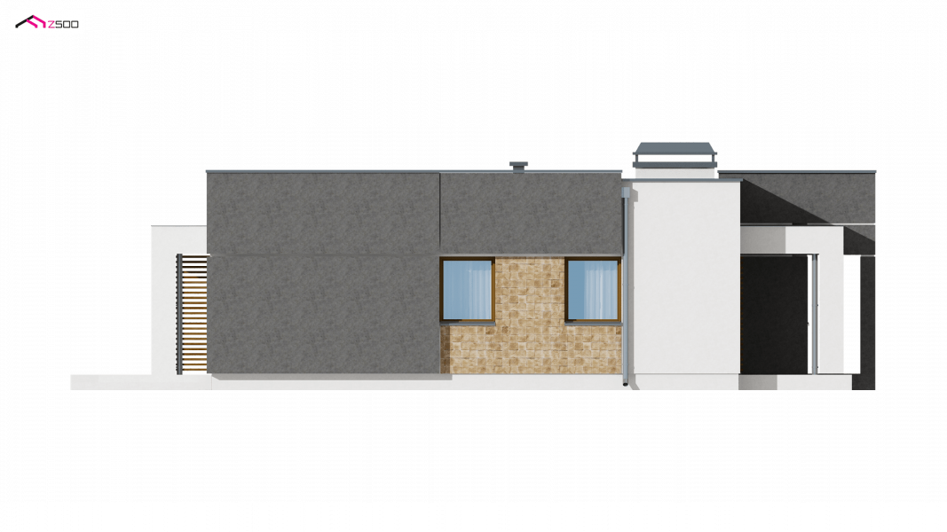 Zx105 to kompaktowy dom parterowy z płaskim dachem dla 2-3 osobowej rodziny.
