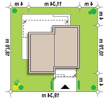 - Min. wymiary działki 18.70x19.34 m