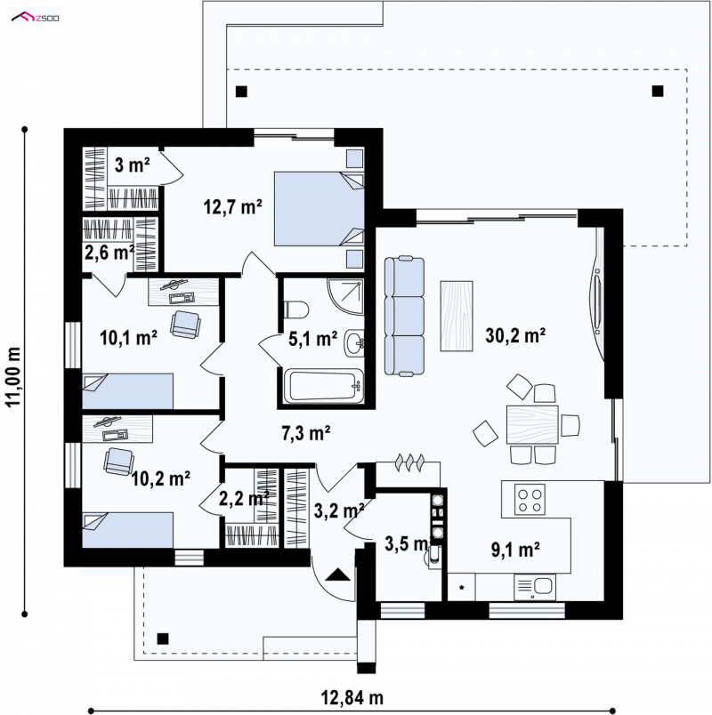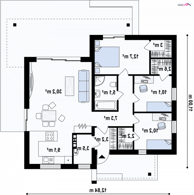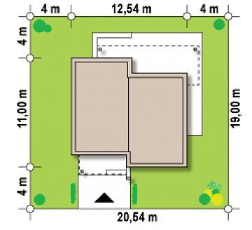- Min. wymiary działki 19.00x20.84 m