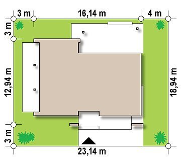 - Min. wymiary działki 18.94x23.14 m