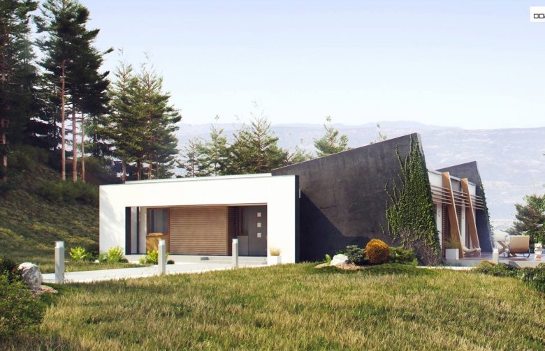 Zx106 to wyjątkowy projekt z kolekcji Parto o ciekawym, nowoczesnym wyglądzie. Charakterystyczny element szarej betonowej ściany ze skośnym ścięciem nadaje mu unikatowy styl.