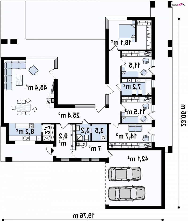 Skoro poruszyliśmy już kwestię „męskości” i „kobiecości”, to nie zapomnijmy dodać, iż właśnie z tego tytułu w garażu zostały zaprojektowane dwa stanowiska postojowe. Jeno dla „niej”, drugie dla „niego”. Natomiast niewątpliwie największym atutem opisywanego projektu w dalszym ciągu pozostaje tętniące życiem atrium. To tutaj w zaciszu roślinnej zieleni będziemy mogli wspominać nasze rodzinne problemy z serii: „-Kochanie, samochód mi nie chce odpalić”… „ - A zatankowałaś??”…”