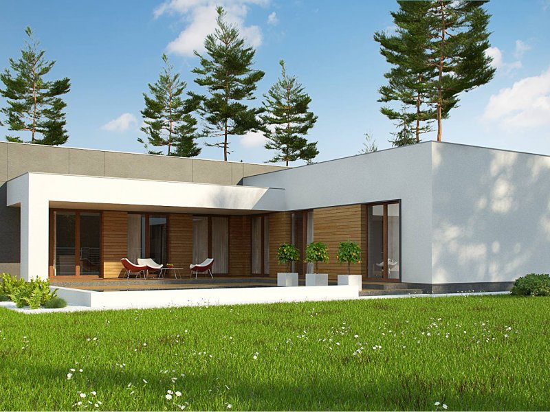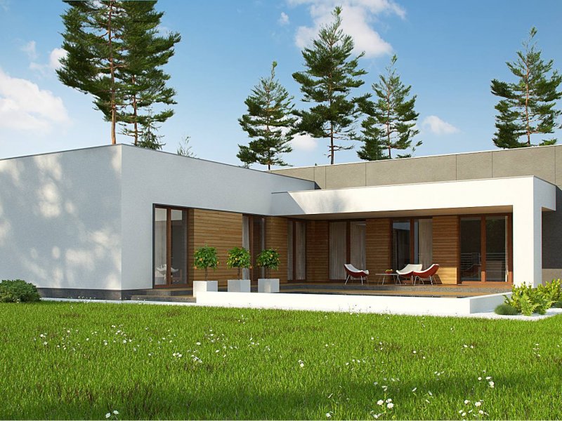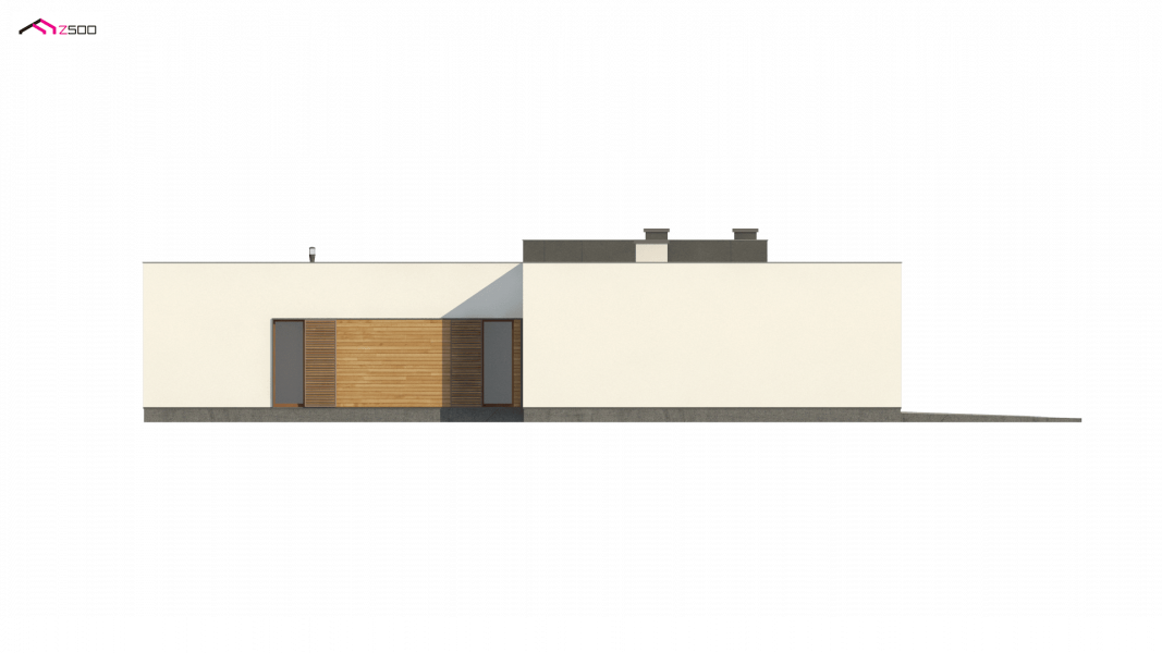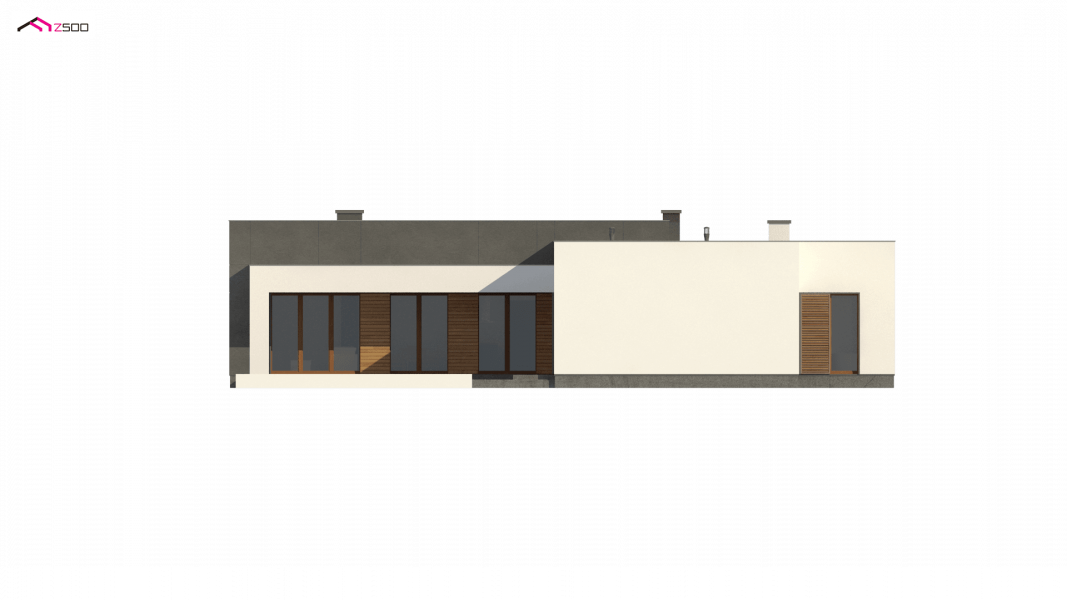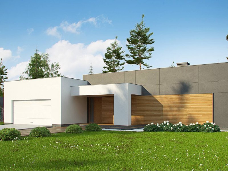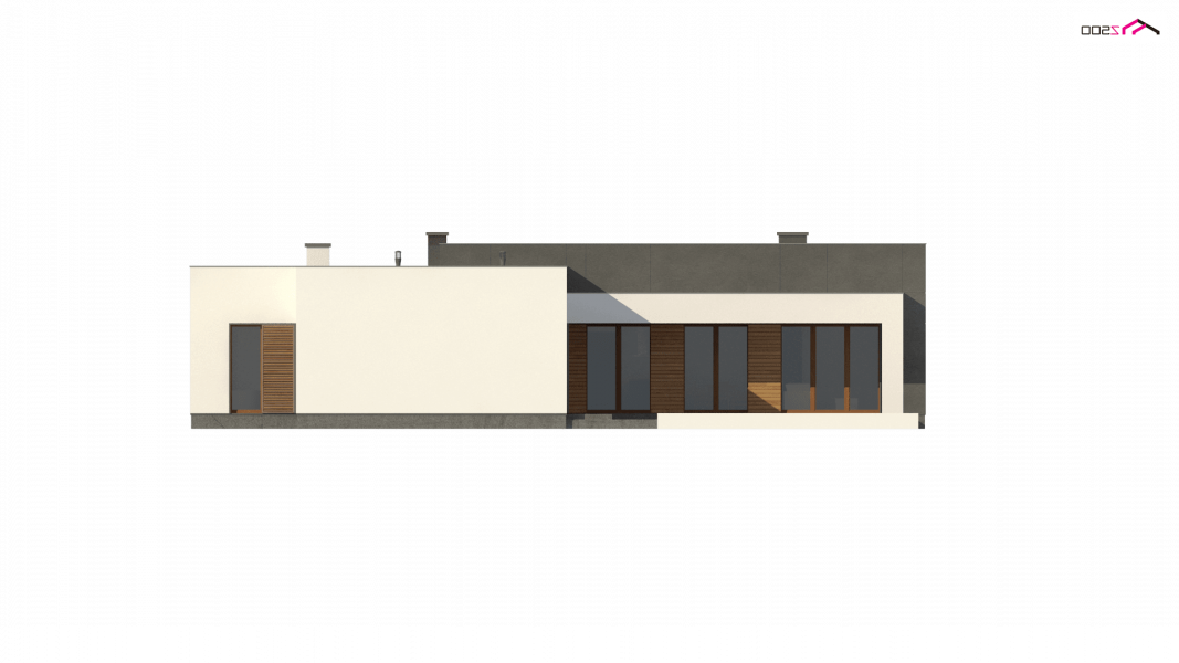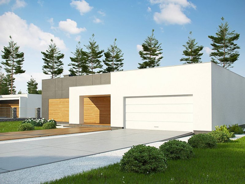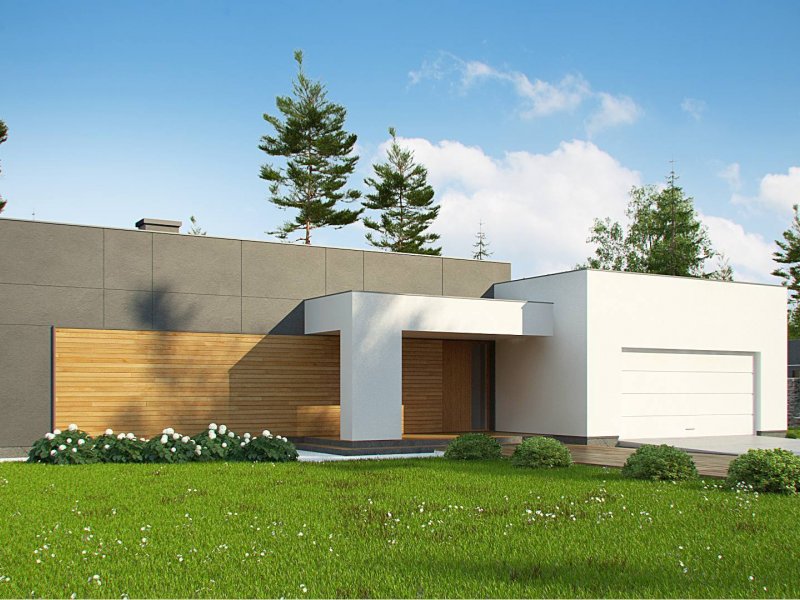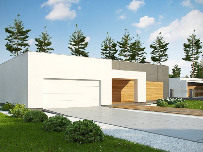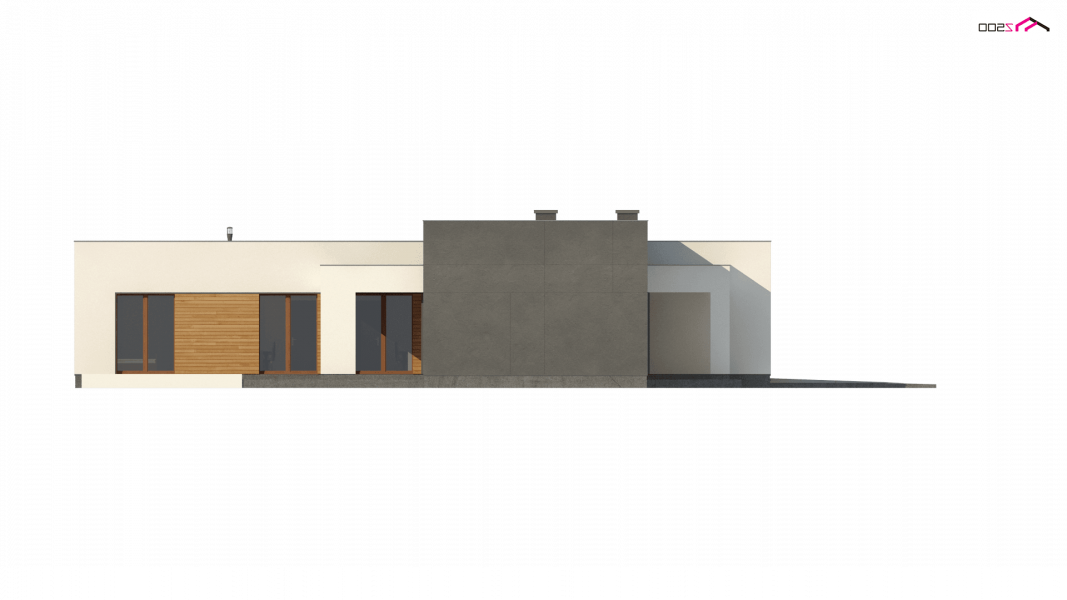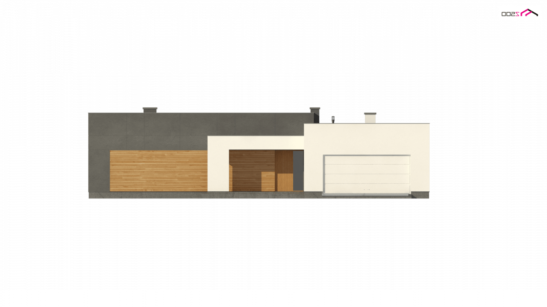 Zx133 to nowoczesny, parterowy dom wolnostojący z płaskim dachem i 2 - stanowiskowym garażem.