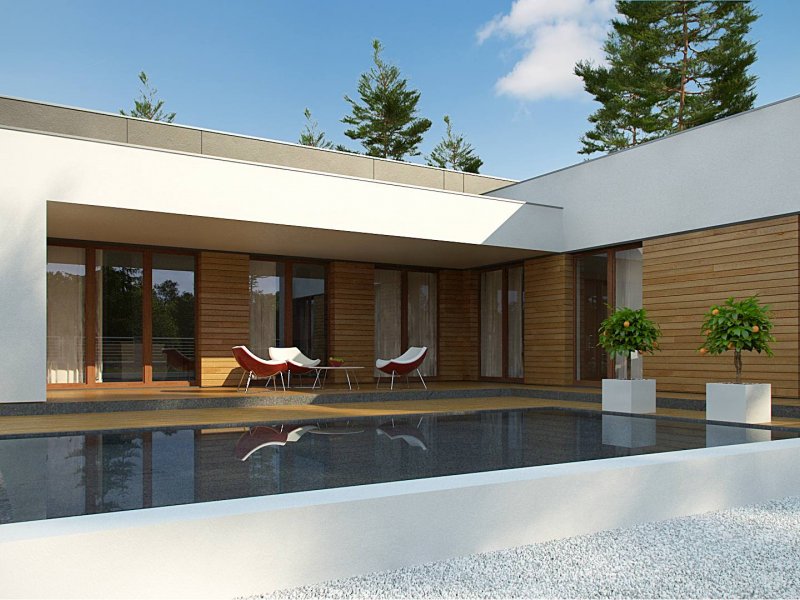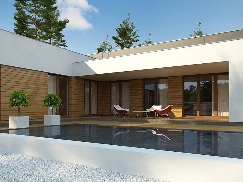 Nowoczesna bryła z drewnianymi elementami, duże przeszklenia, basen, oraz możliwość podkreślenia strefy wypoczynkowej sprawiają, że projekt Zx133 dedykowany jest dla osób szczególnie pragnących swobody, relaksu i wypoczynku, po ciężkim dniu pracy.