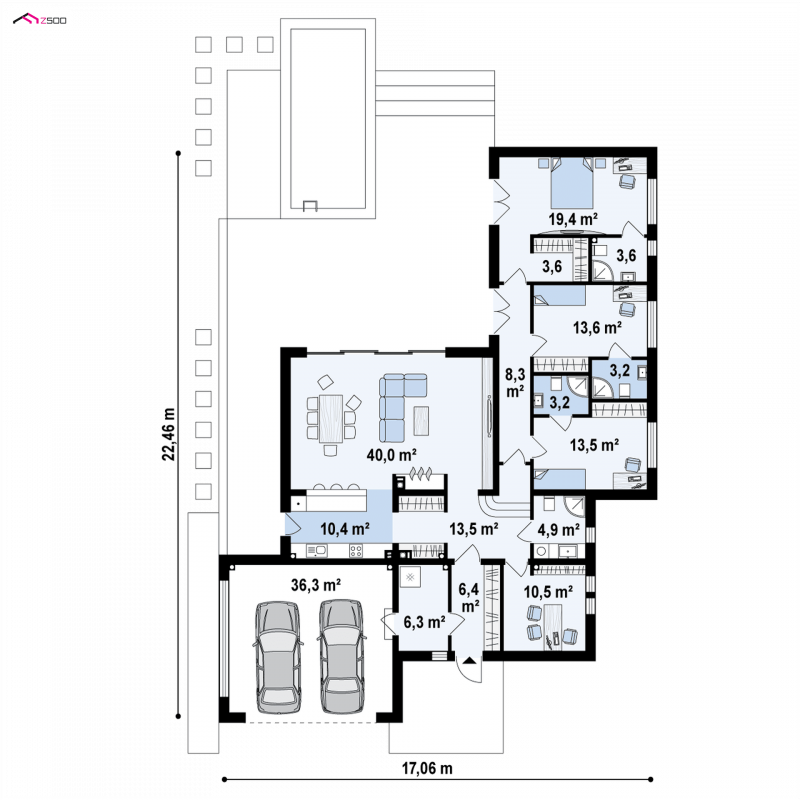 Projekt Zx141 jest dedykowany dla niedużej rodziny, pragnącej decydować o swoim życiu w ciszy, spokoju i cieple domowego ogniska.