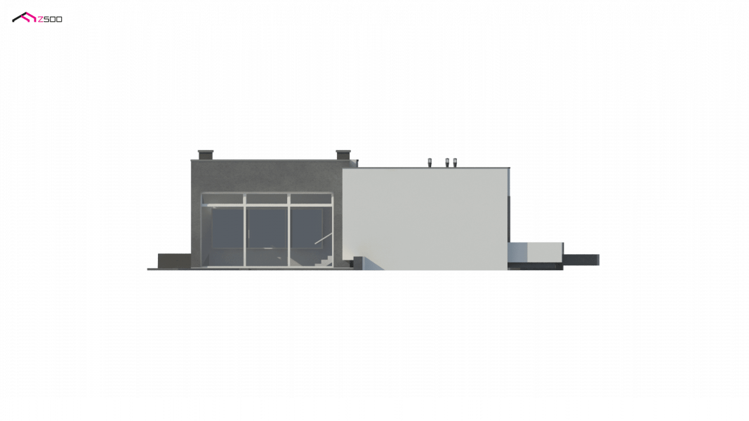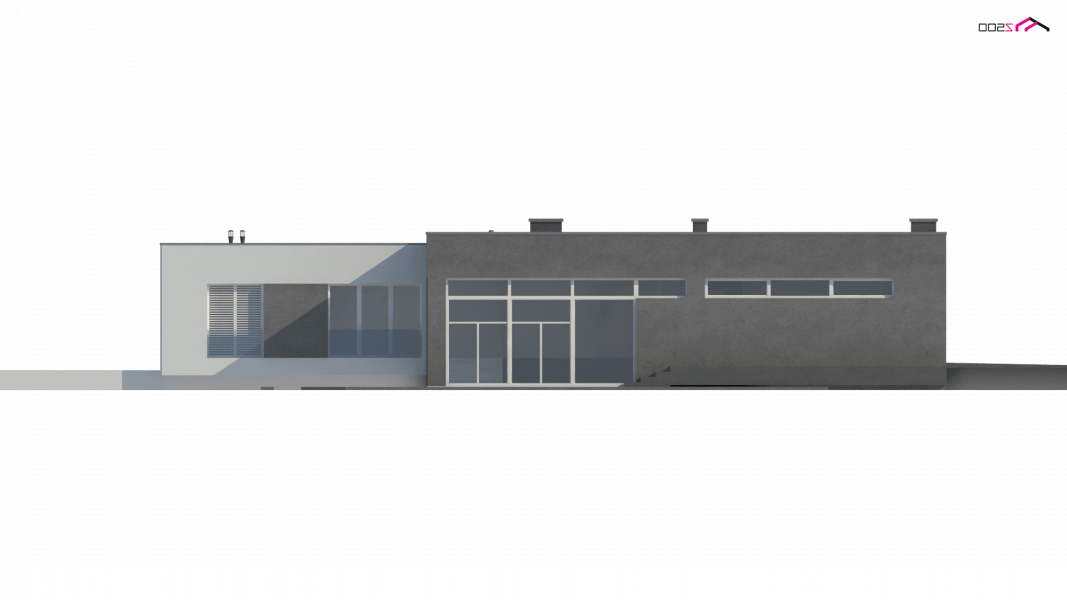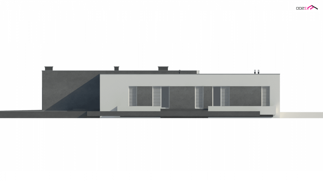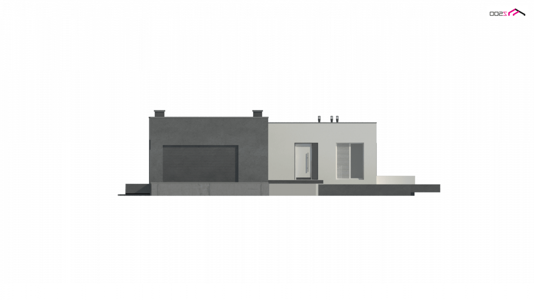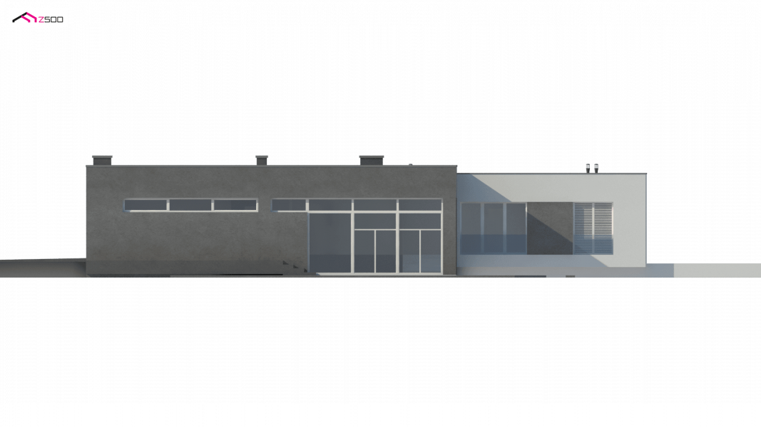 Elewację wykończono w dwóch chłodnych kolorach – bieli i szarości.