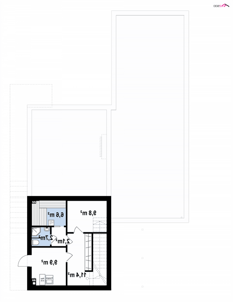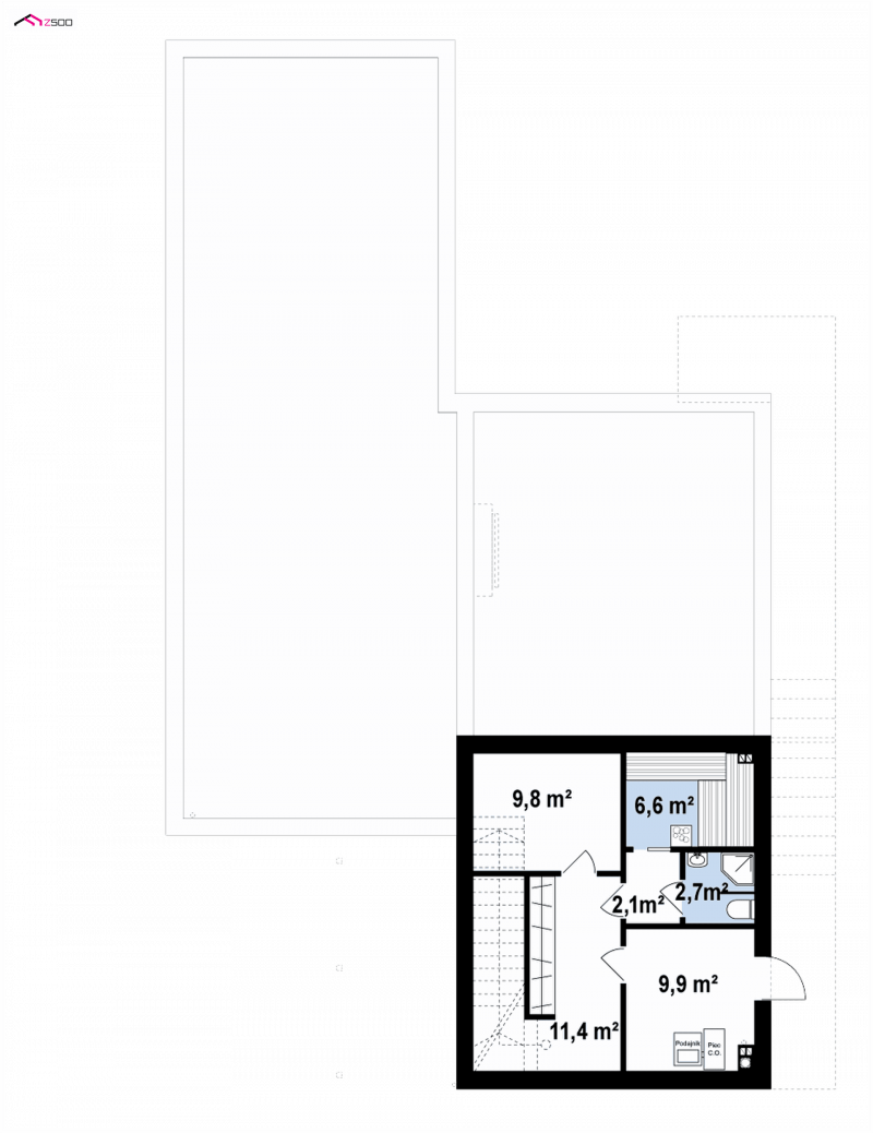 Wnętrza składają się z dwóch poziomów. Na poziomie -1 umiejscowiono część techniczną i relaksacyjną. Pomieszczenie gospodarcze, warsztat/salę gimnastyczną, oraz saunę i łazienkę. Saunę można zaadaptować na inne pomieszczenie.